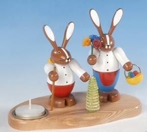 Teelichthalter Hasenpaar bunt Höhe 18,5 cm NEU Osterdeko Osterhasenfigur Ostern