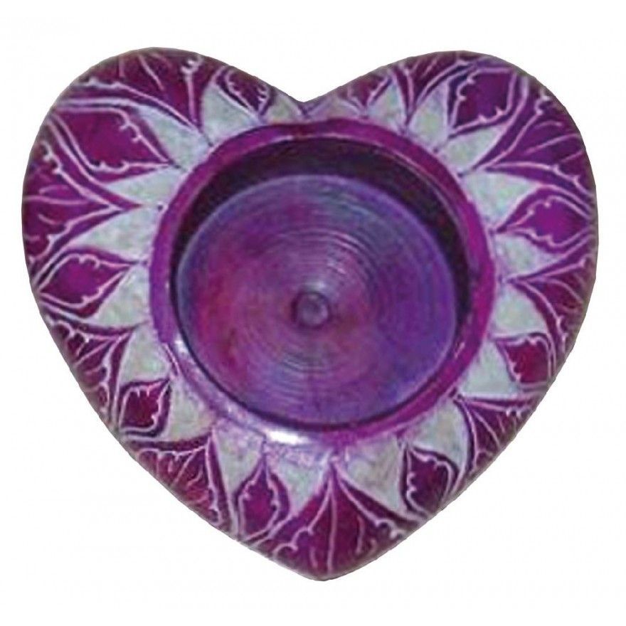 Saraswati Teelichthalter HERZ Speckstein lila 6 cm Windlicht Kerzenhalter Kerzenständer