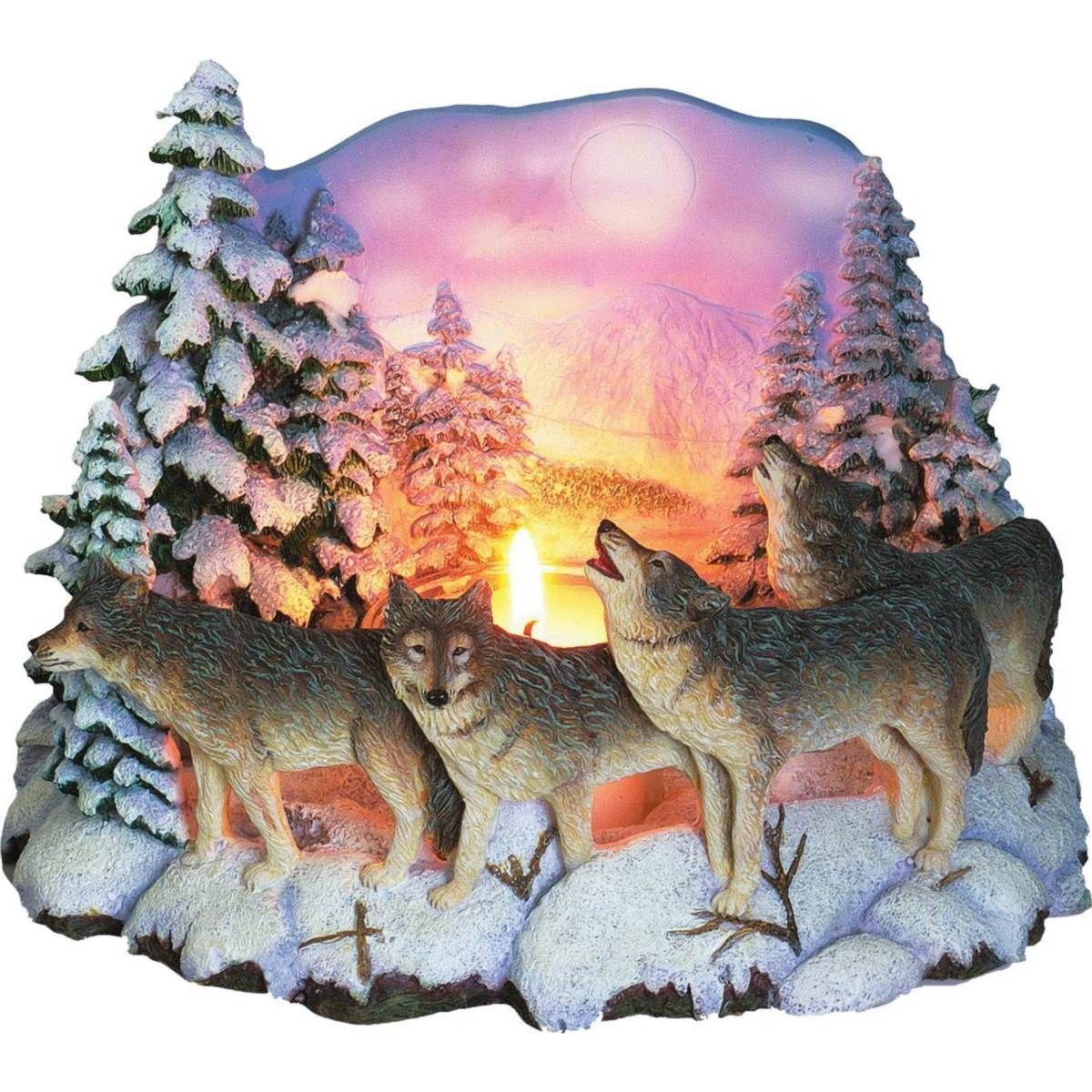 Teelichthalter mit Wölfen im Schnee