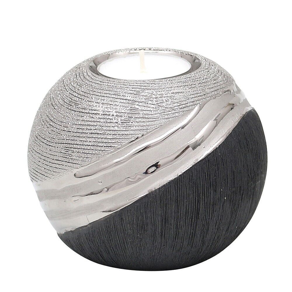 Teelichthalter "SILVERLINE"-Serie Keramik Kerzenhalter Kugel silber Deko Stil