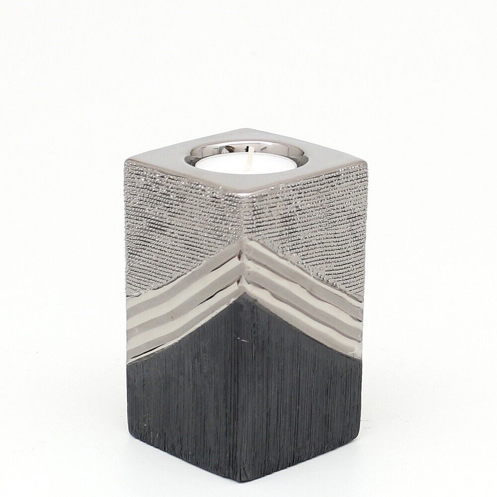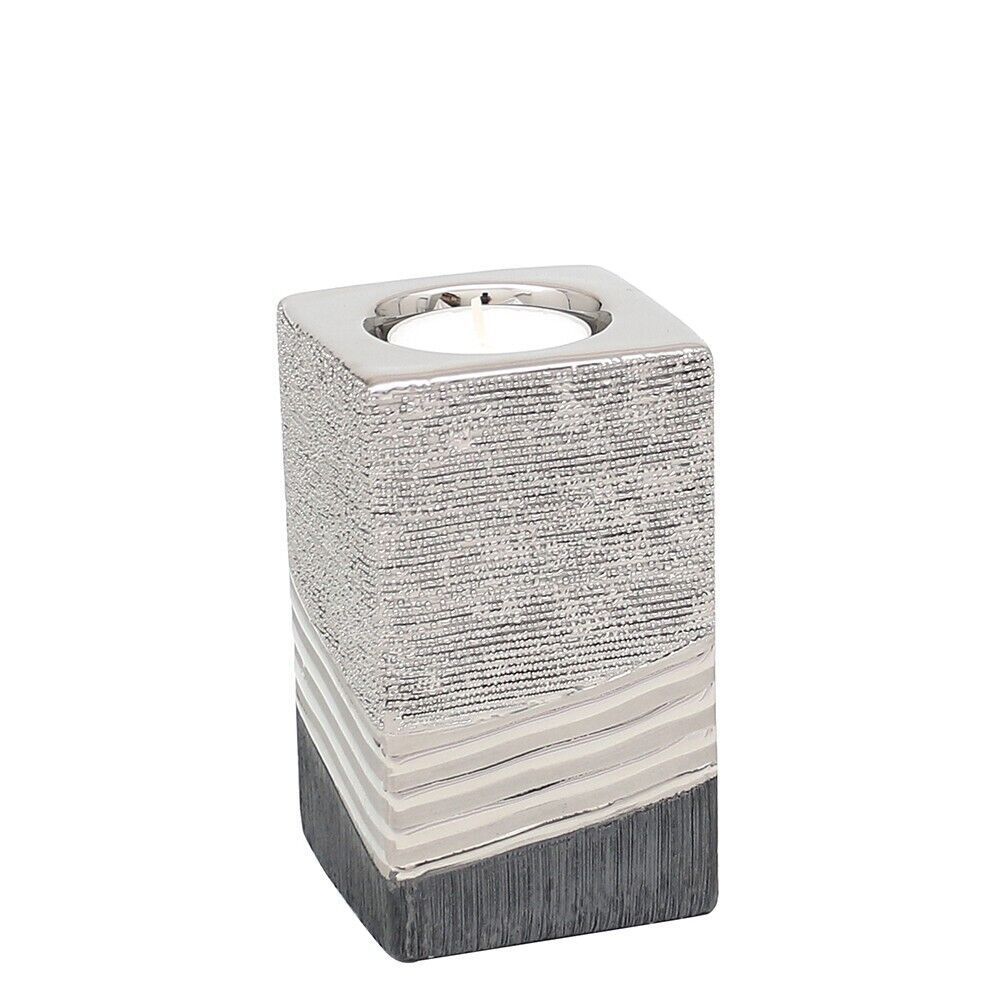 Teelichthalter "SILVERLINE"-Serie Keramik Kerzenhalter Vierkant silber Deko Stil