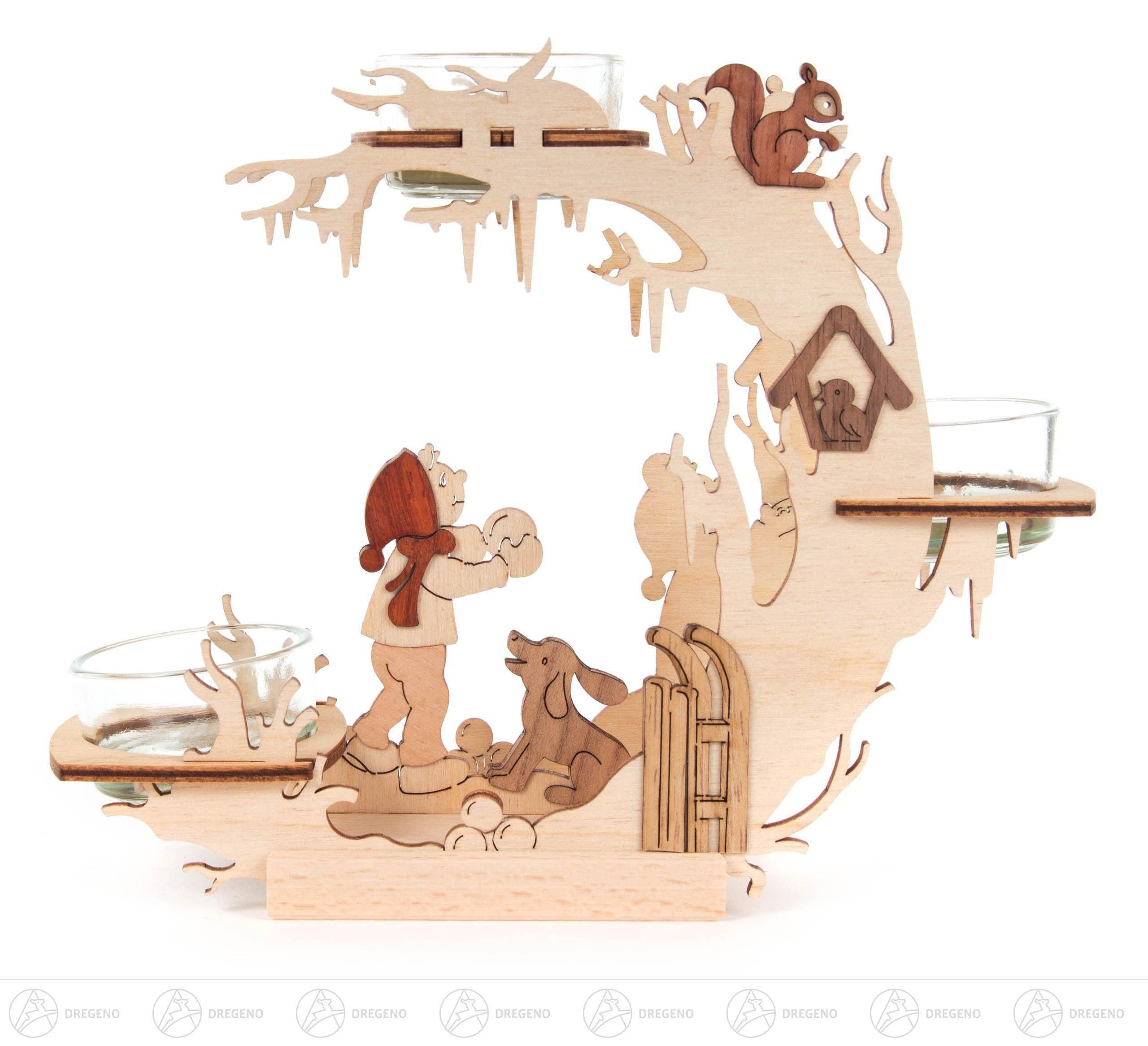 Teelichtkranz mit Winterkindern BxH 190 x 140mm NEU Teelichtständer Kerzenhalter