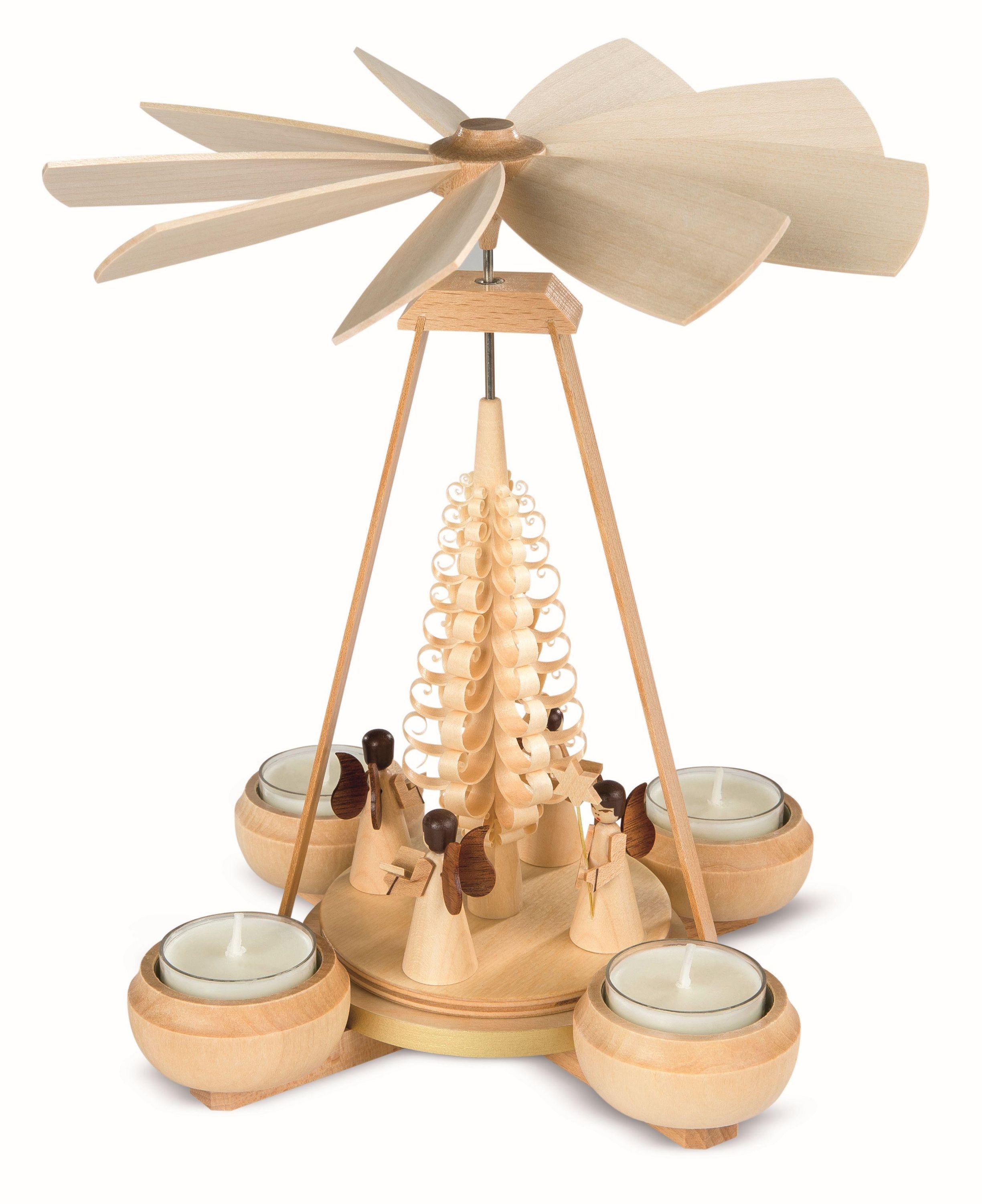 Teelichtpyramide Engel 1-stöckig natur für 4Teelichter