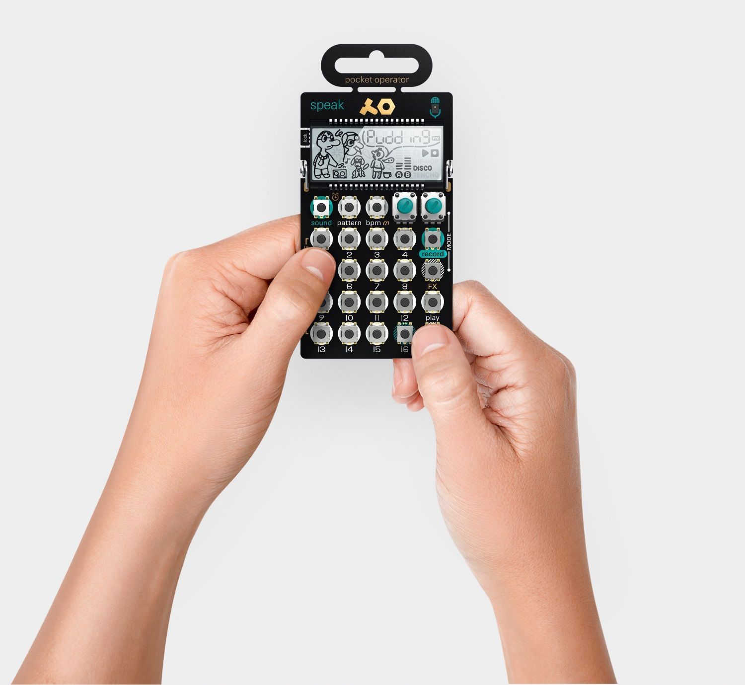 Teenage Engineering PO-35 Speak Vocal Synthesizer und Sampler PO-35 speak ist eine Kombination aus Vocal Synthesizer und Sampler. Über das eingebaute Mikrofon kann die eigene Stimme aufgenommen, ihr Charakter über 8 integrierte Voice-Characters umfangreich verbogen und anschließend gespielt bzw. dur