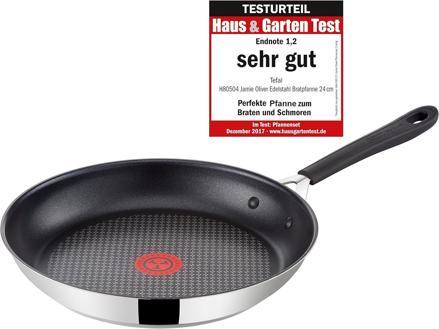 Tefal Tefal H80504 Jamie Oliver Edelstahl Bratpfanne 24 cm, Induktion Pfanne mit Antih
