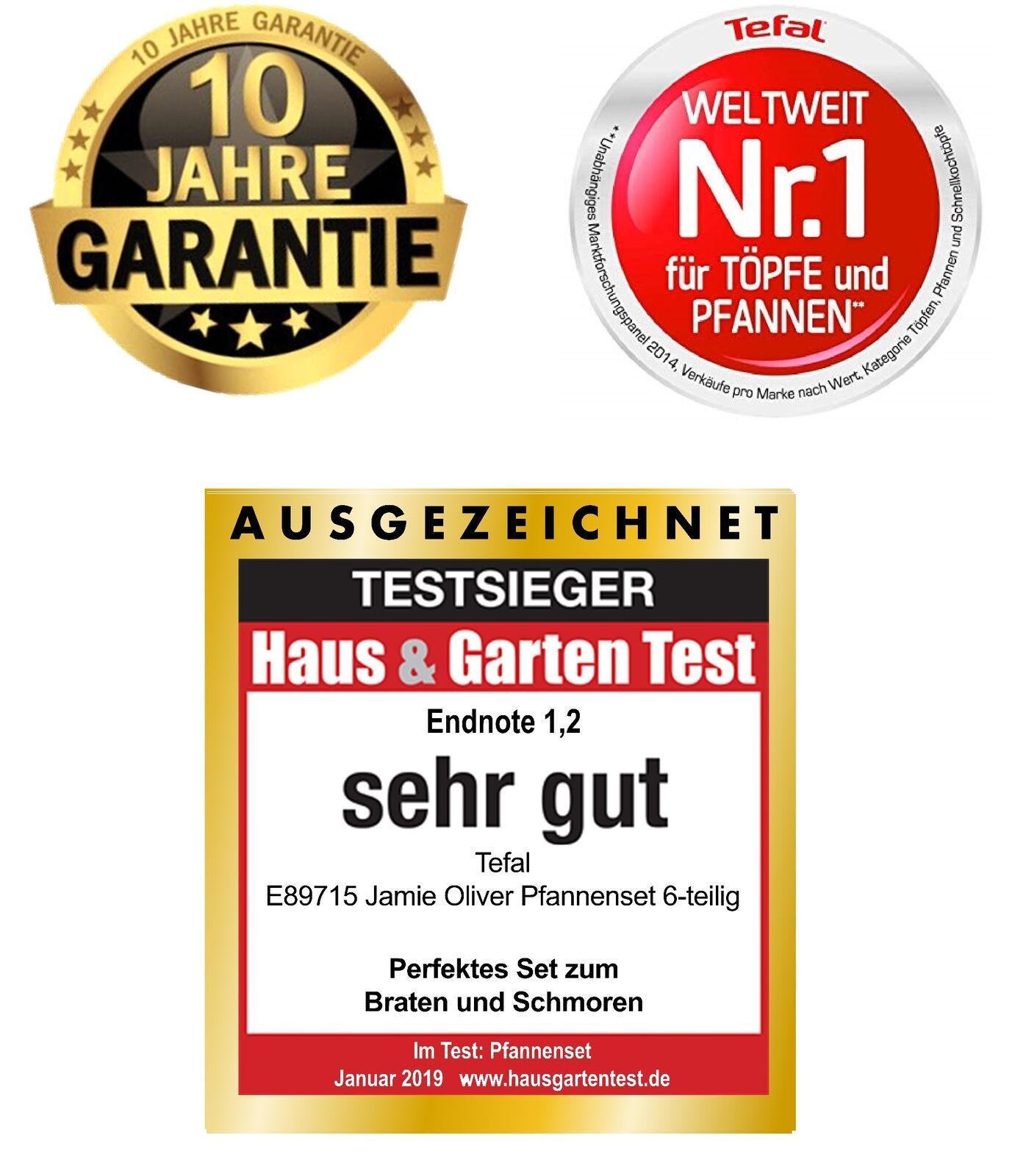 Tefal J90935 Jamie Oliver Pfannenset 6TLG Bratpfanne Schmorpfanne Induktion Pan