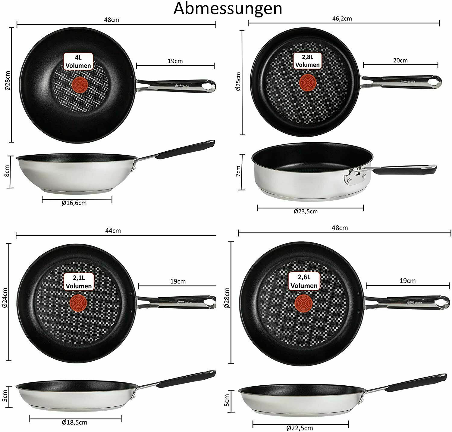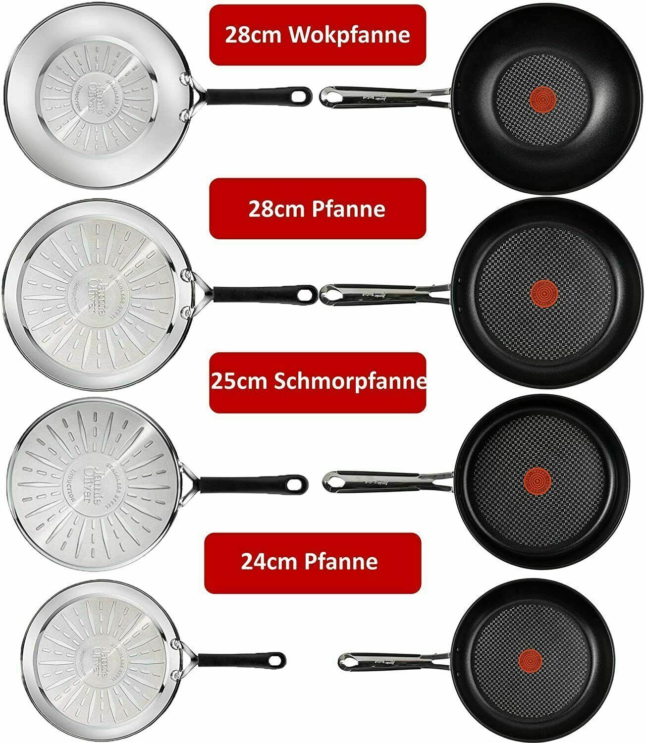 Tefal Tefal Jamie Oliver E76 Set 17 Pfannenset, Schmor 25cm, Wok 28cm, Pfanne 24 + 28cm