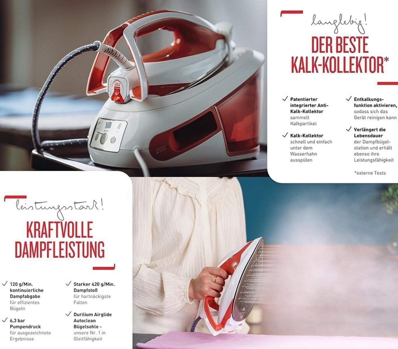Tefal Tefal Power Express Bügeleisen Dampfbügelstation Dampfbügeleisen 2800 W Rot/Weiß