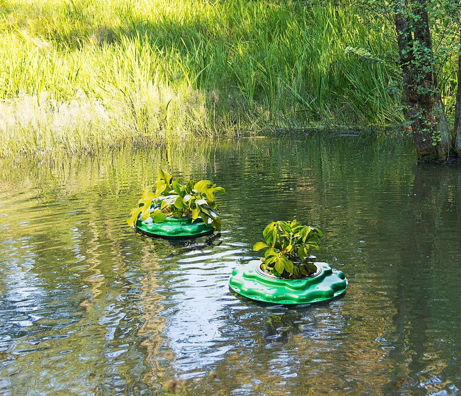 Teich-Pflanztopf schwimmend, 2er Set treibende Pflanzinsel Gartenteich Insel