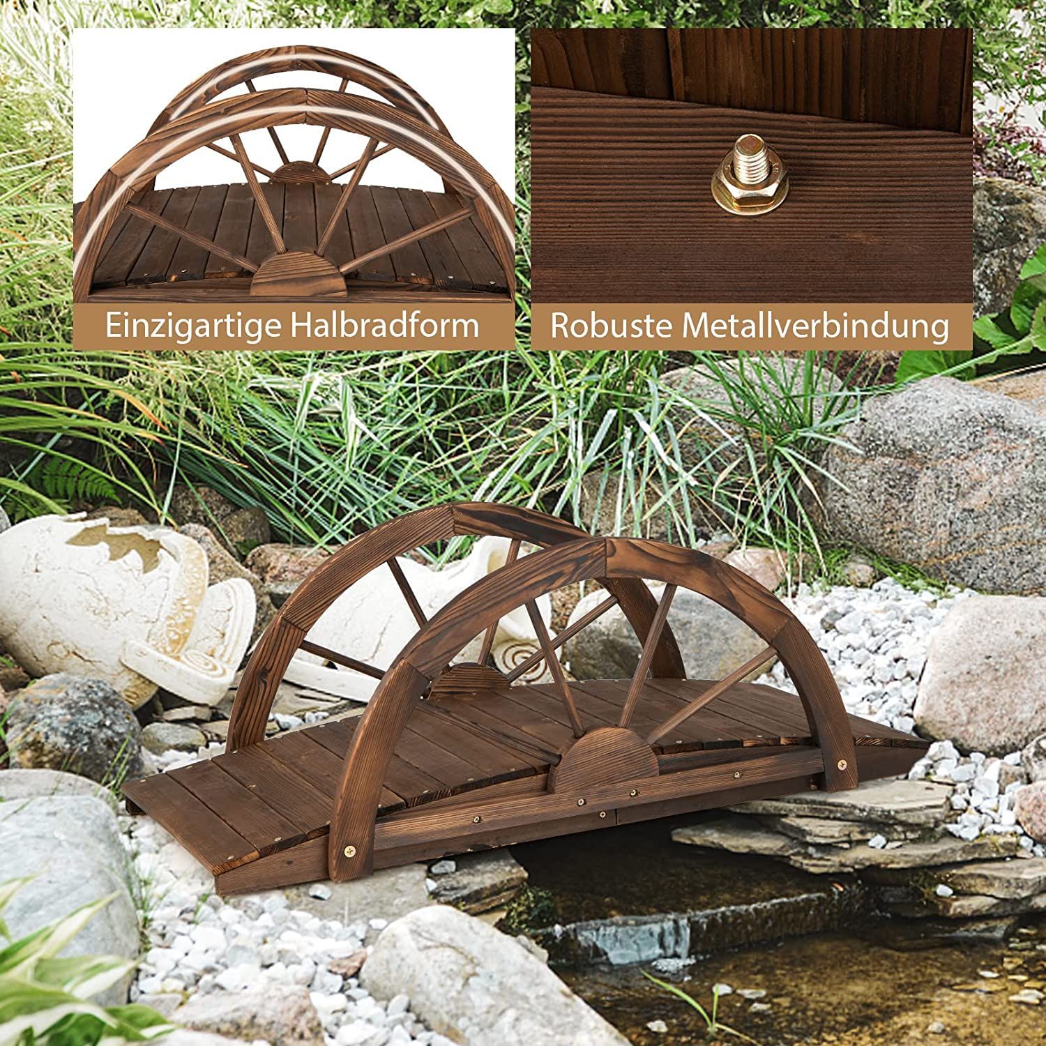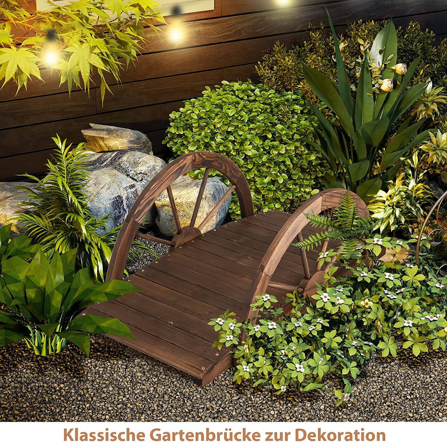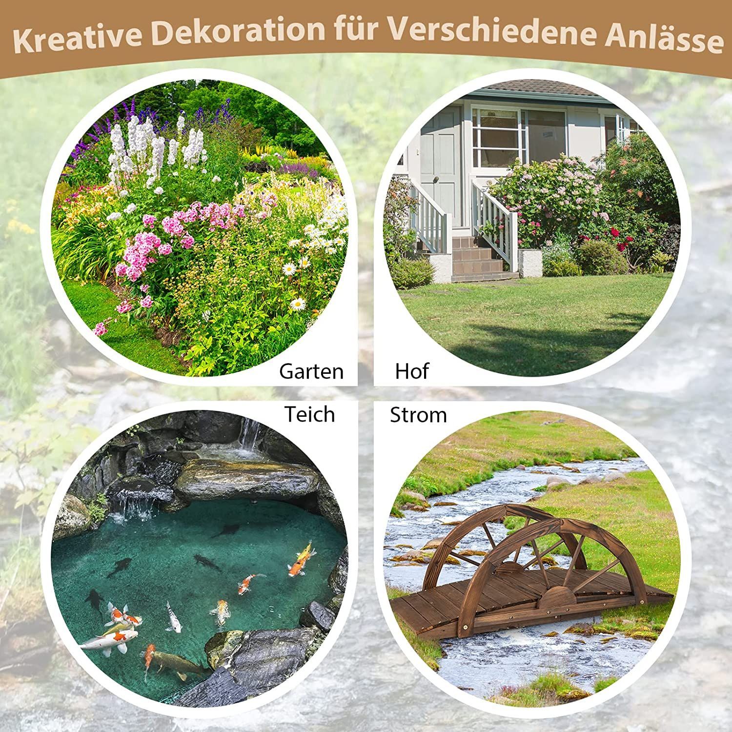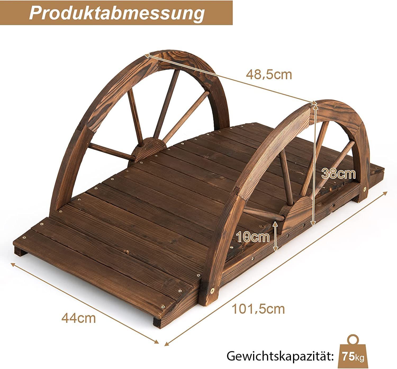 Teichbrücke Gartenbrücke, Holzbrücke mit doppeltem Halbradgeländer, 101 x 48,5 x 38cm