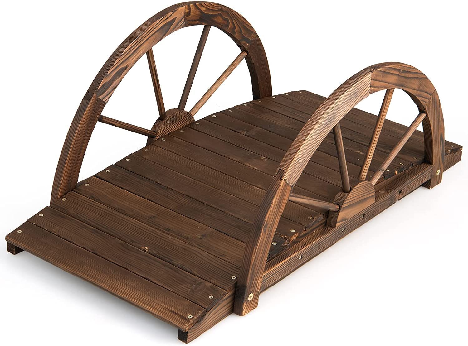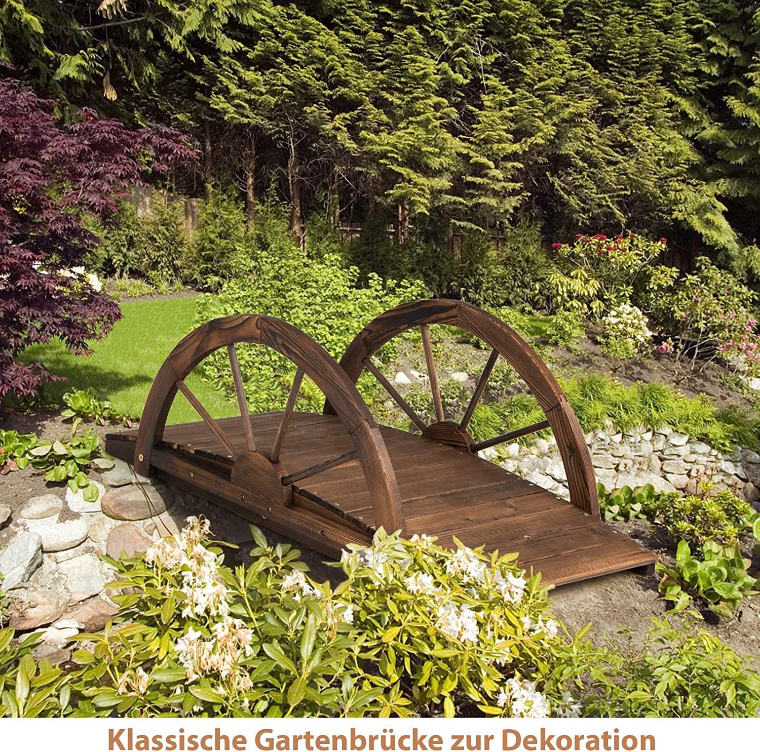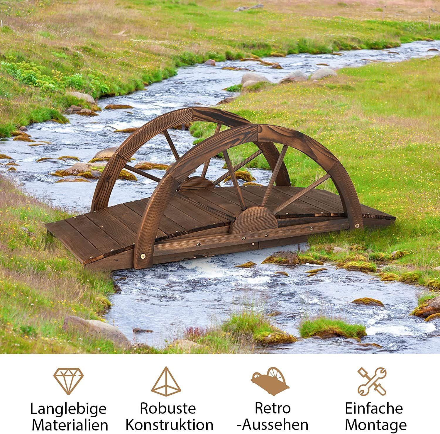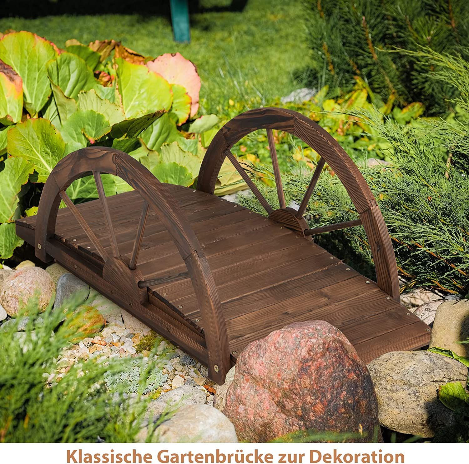Teichbrücke Gartenbrücke, Holzbrücke mit doppeltem Halbradgeländer, 101 x 48,5 x 38cm