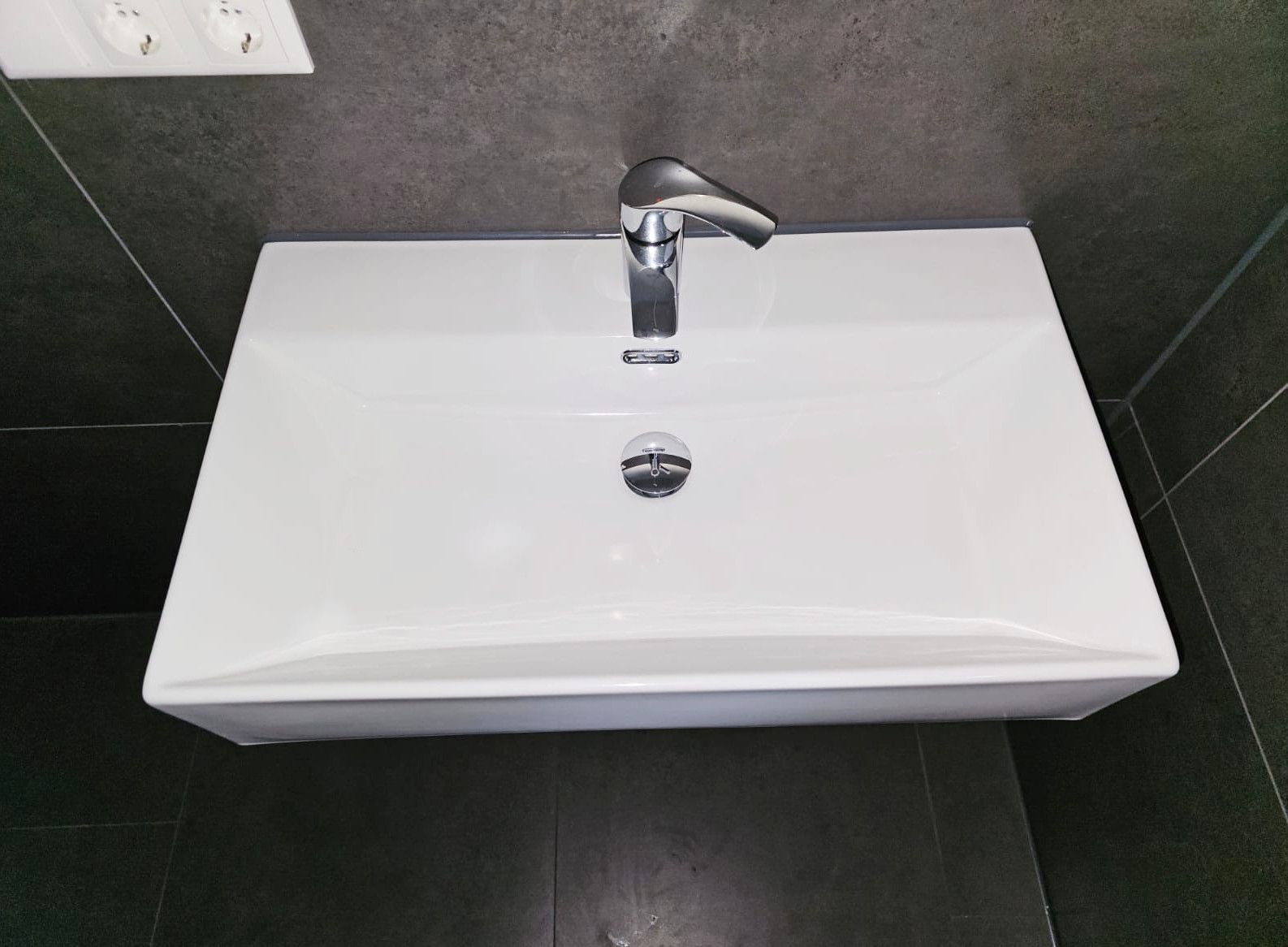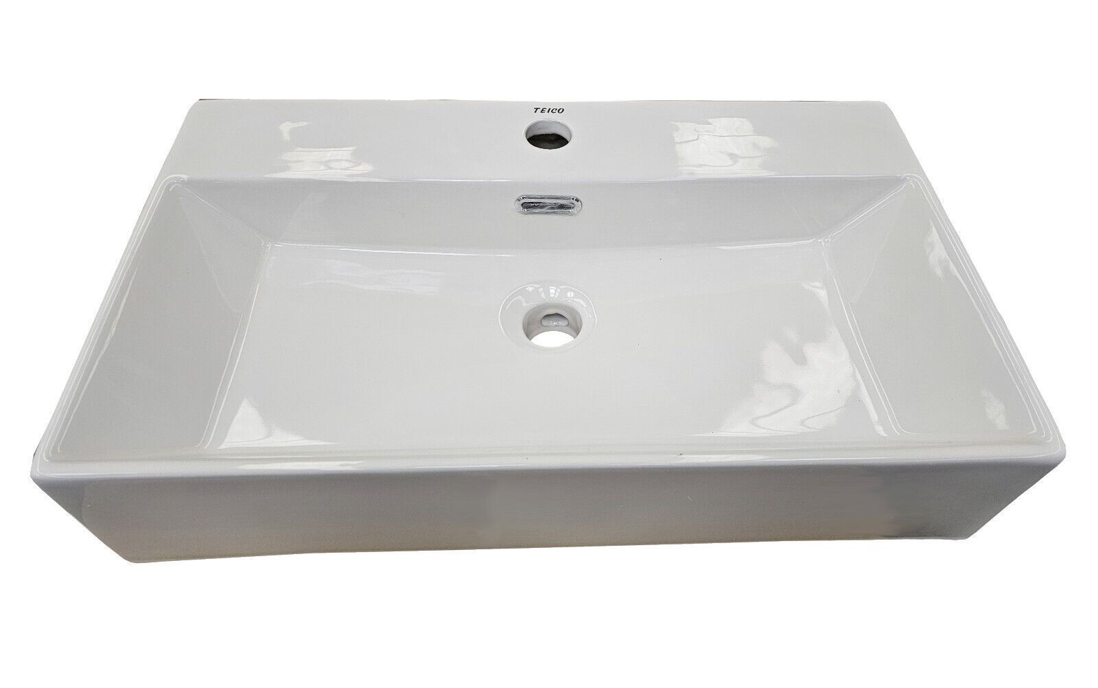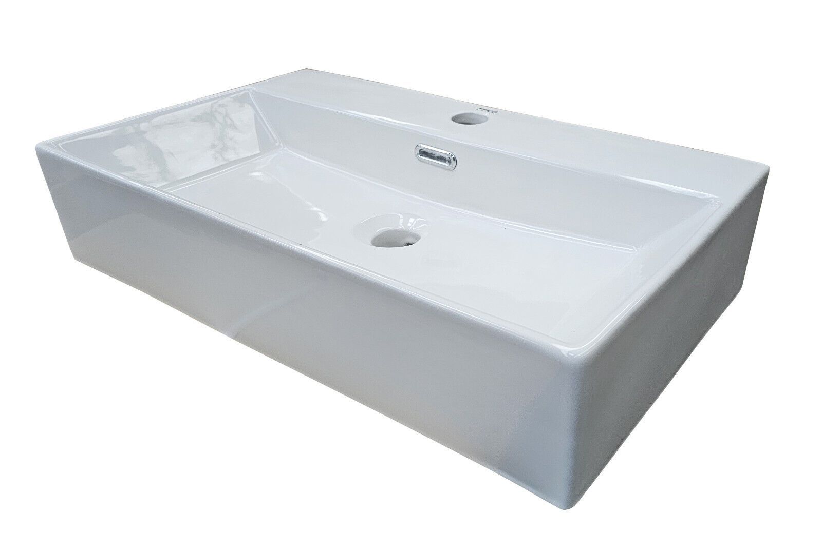 Luxuriöses Keramik-Waschbecken rechteckig mit Überlauf und Hahnloch