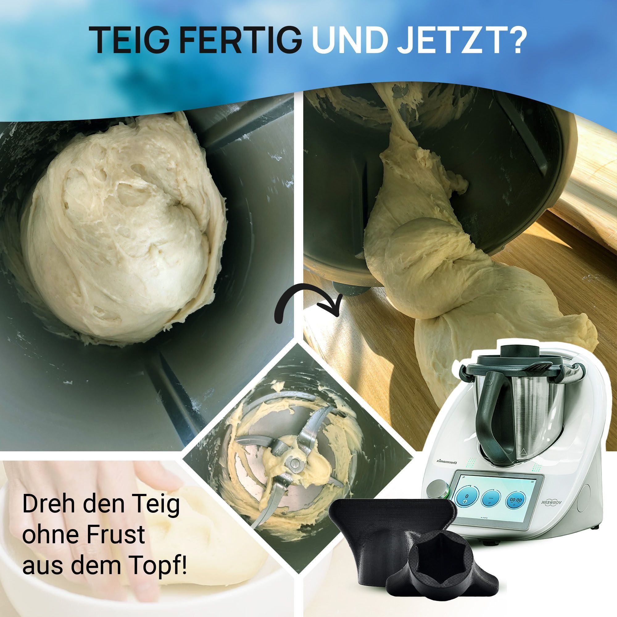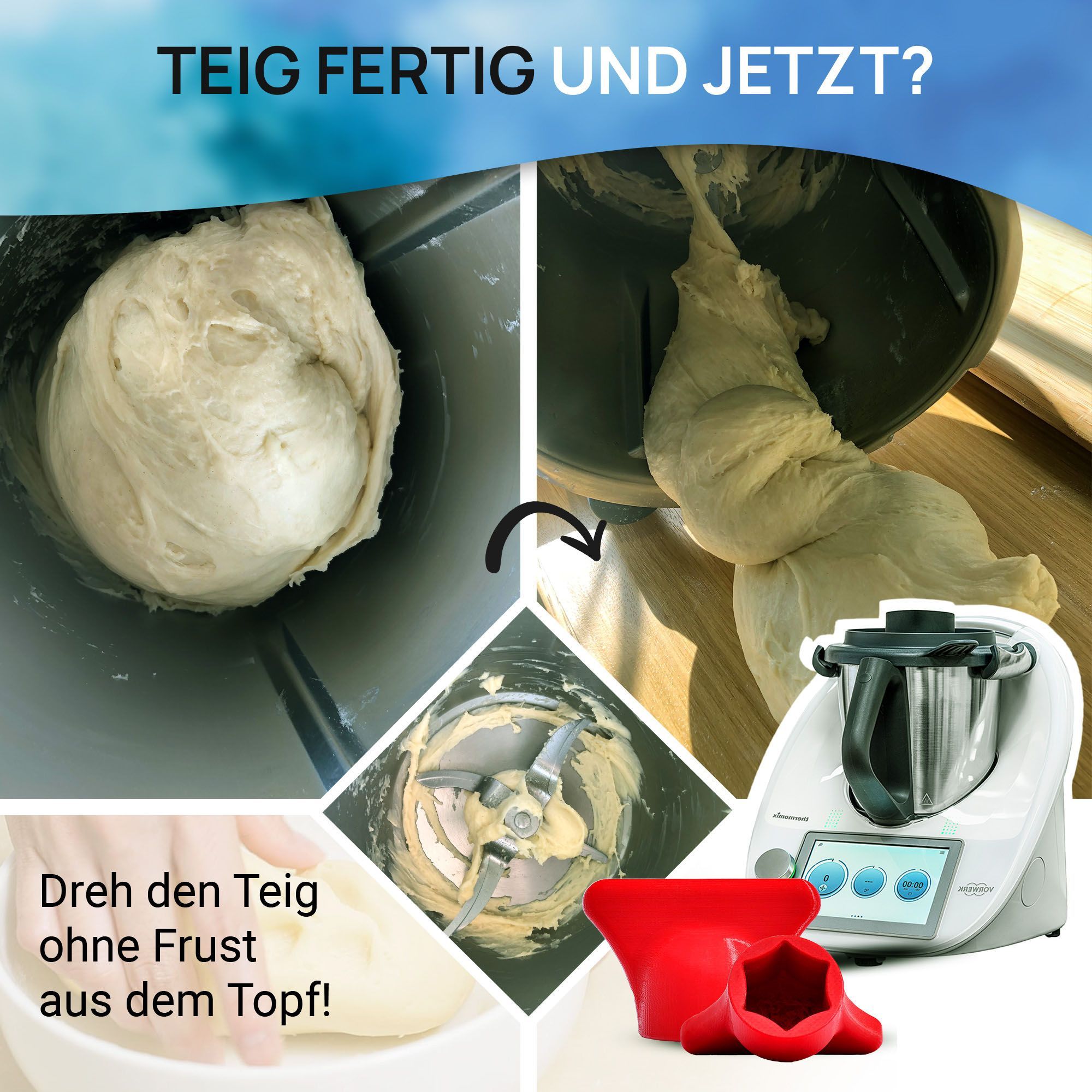 Teigblume für Thermomix, Teiglöser Zubehör für Vorwerk Küchenmaschine TM5 + TM6