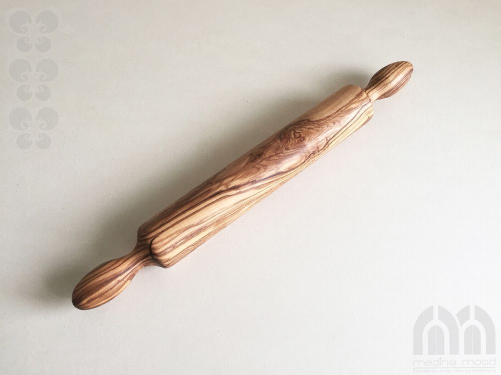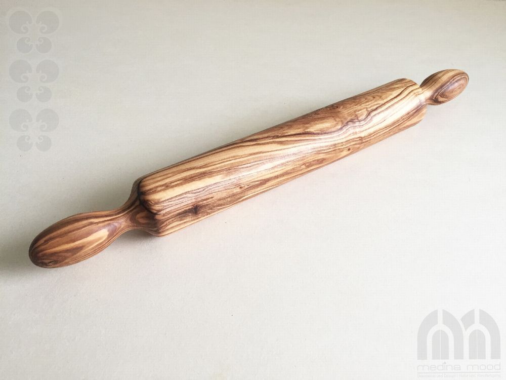 Teigroller mit 2 Griffen 43 cm , Pizzarolle, Nudelholz, Olivenholz Handarbeit