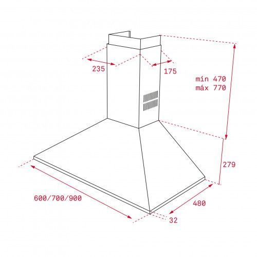 Teka Teka DBB90 Pyramiden-Wandhaube mit Drucktasten, 90cm