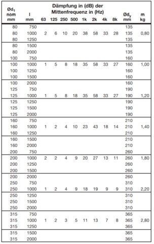 Telefonie Schalldämpfer Rohr Lüftung rund NW 80 - 300 mm, 50 mm dick