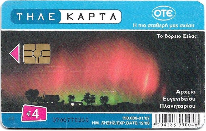 Telefonkarte aus Griechenland , gebraucht leere 4,- € Chip-Karte. Auflage 150.000