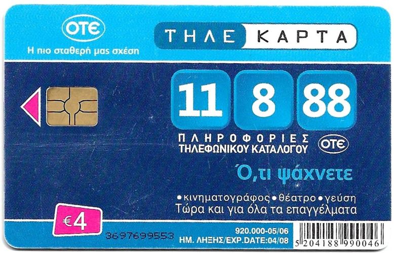 Telefonkarte aus Griechenland , gebraucht leere 4,- € Chip-Karte. Auflage 920.000