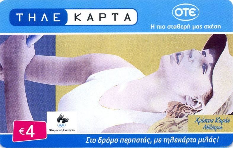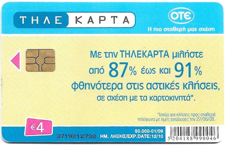 Telefonkarte aus Griechenland , gebraucht leere 4,- € Chip-Karte Auflage 50.000