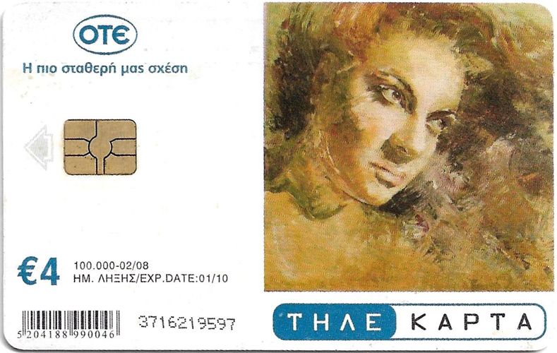 Telefonkarte aus Griechenland , gebraucht leere 4,- € Chip-Karte. Auflage 100.000