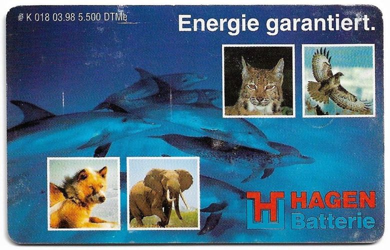 Telefonkarte K 018 von 1998, Hagen Batterie voll mit 6,00 DM, Auflage 5.500 Achtung: Karte ist unbenutzt, hat aber durch ungünstige Lagerung starke Abnutzungen und sieht gebraucht aus !!