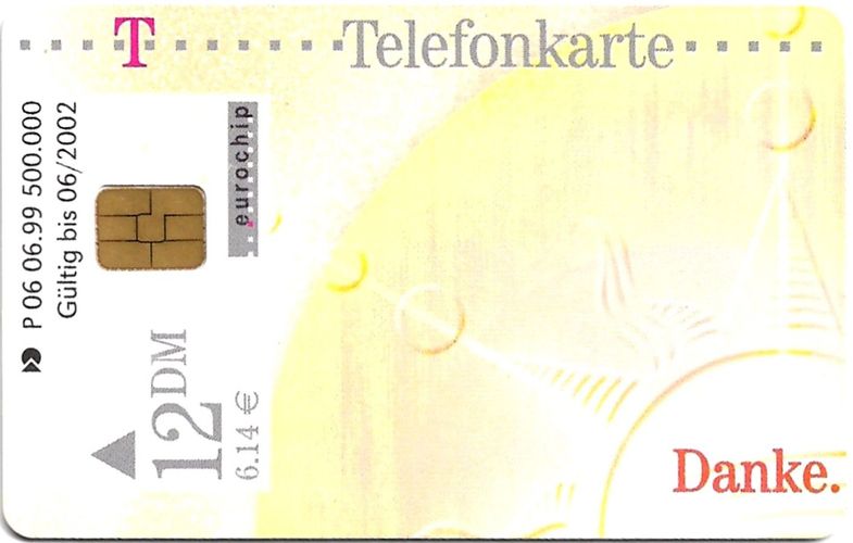 Telefonkarte P 06 von 1999 , Danke , gebraucht, leere 12,- DM Karte Auflage 500.000