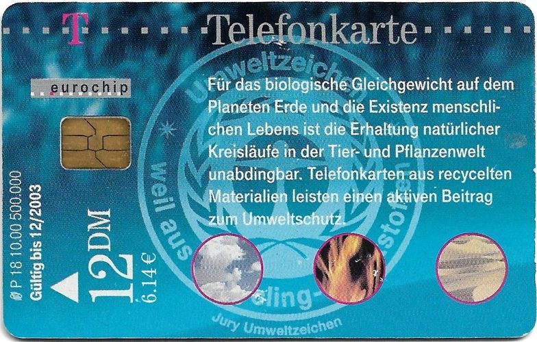 Telefonkarte P 18 von 2000 , Recycling , gebraucht, mit Gebrauchsspuren leere 12,- DM Karte Auflage 500.000