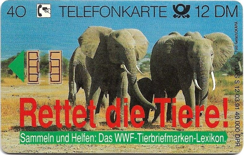 Telefonkarte S 12 von 1991 , WWF Tierbriefmarken , gebraucht , leere 12,- DM Karte Auflage 40.000