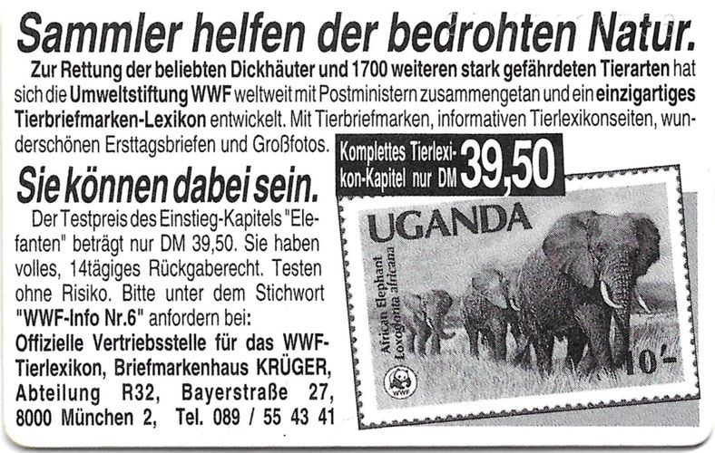 Telefonkarte S 12 von 1991 , WWF Tierbriefmarken , leer