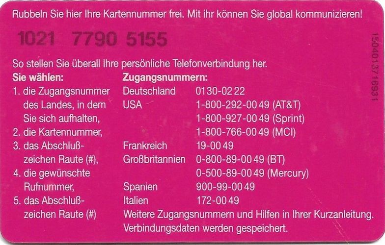 Telefonkarte - T CARD ohne CHIP - 25 DM , leer