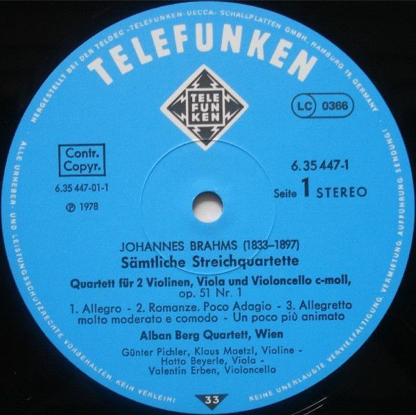 Telefunken 6.35447 EK - Johannes Brahms, Alban Berg Quartett - Sämtliche Streic