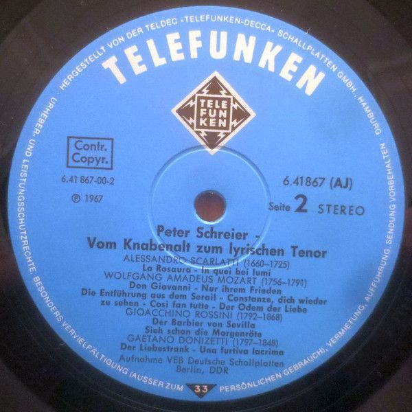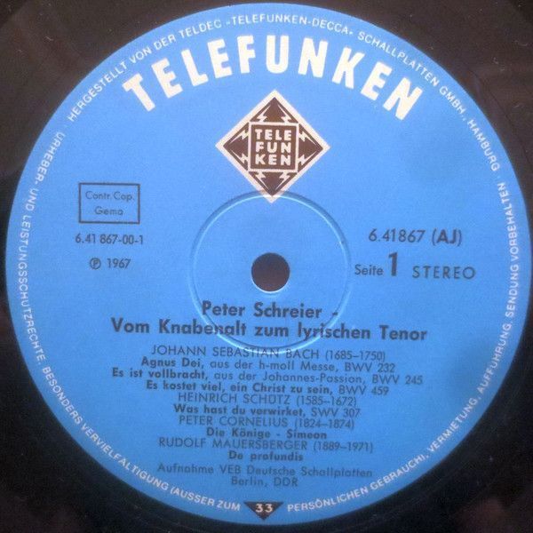 Telefunken 6.41 867 - Peter Schreier - Vom Knabenalt Zum Lyrischen Tenor