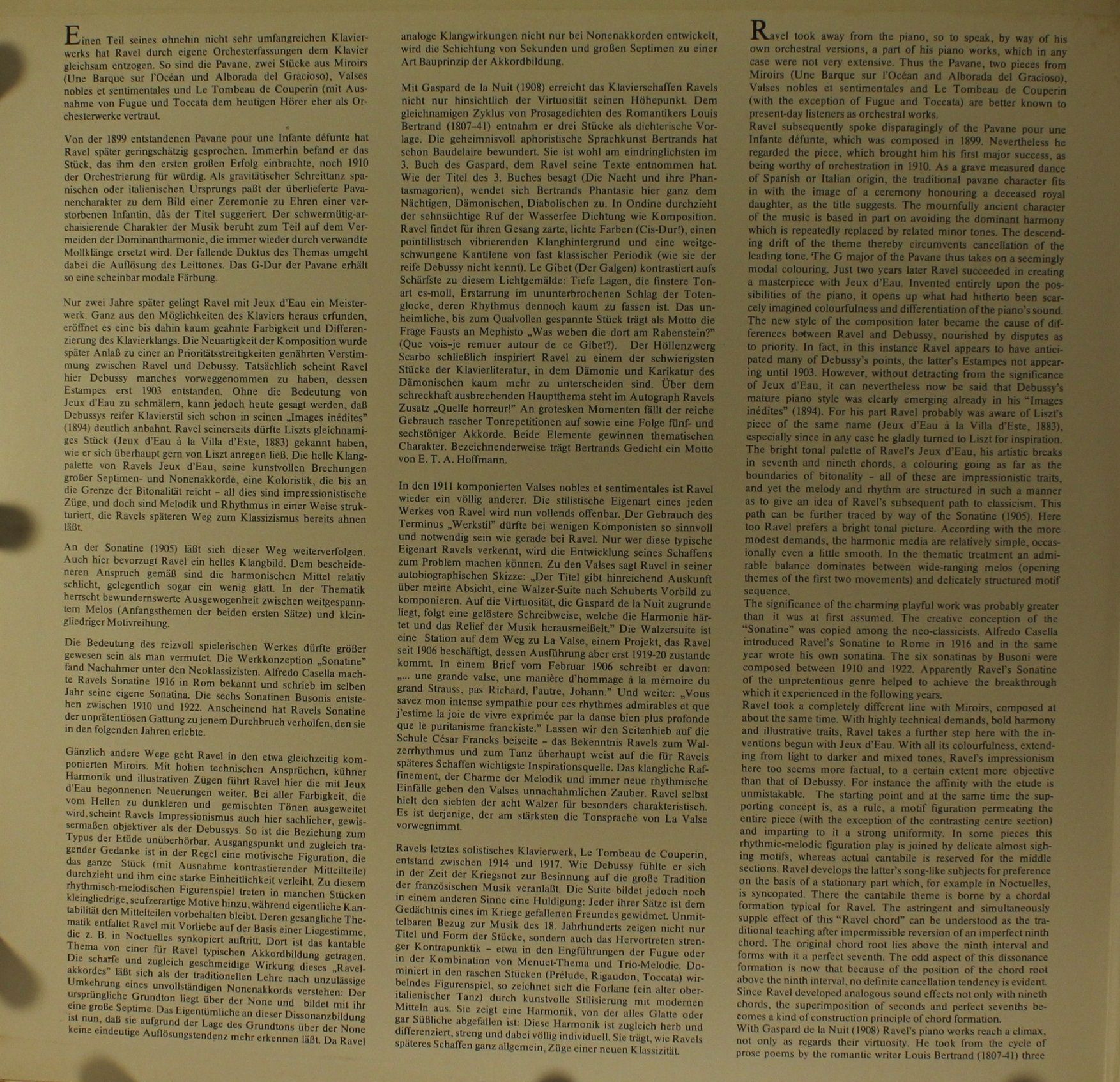 Condition Vinyl Near Mint (NM or M-) Condition Sleeve Very Good Plus (VG+) Tracks included: Miroirs (1905) I 1. > Noctuelles 2. > Oiseaux Tristes 3. > Une Barque Sur L& 039;Océan 4. > Alborada Del Gracioso 5. > La Vallée Des Cloches II 1. Valses Nobels Et Sentimentales (