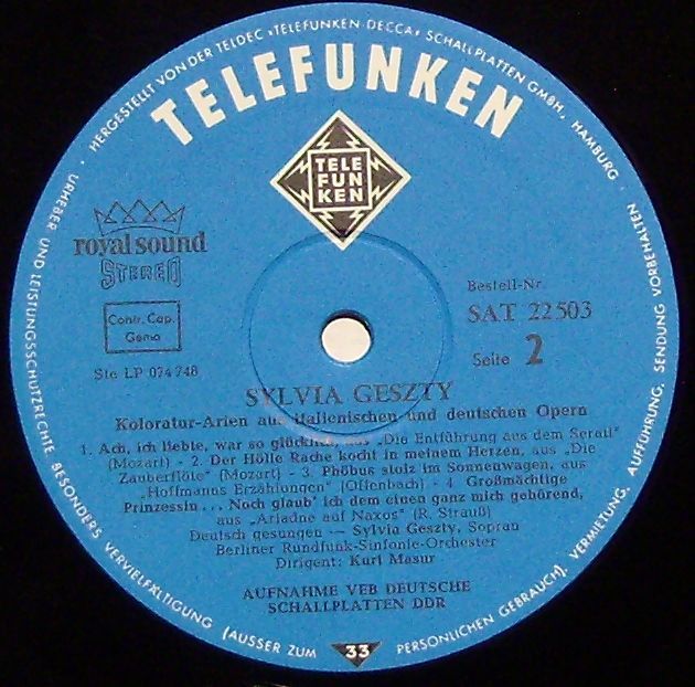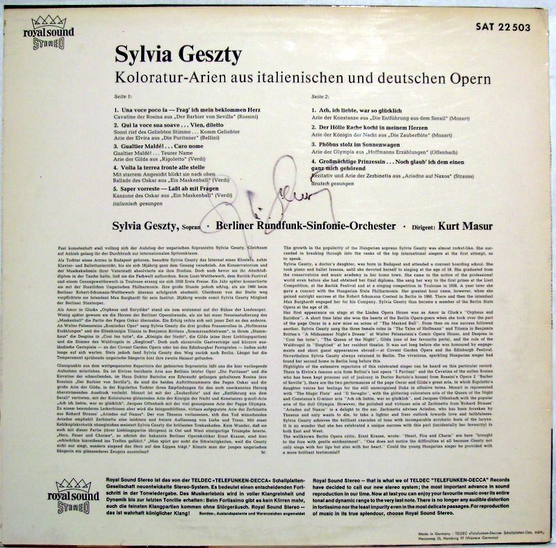 Telefunken SAT 22503 - Sylvia Geszty - Koloratur-Arien Aus Italienischen Und Deu