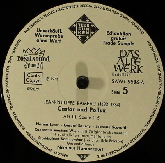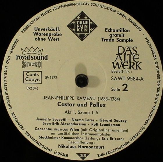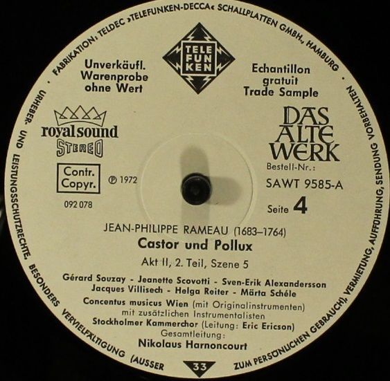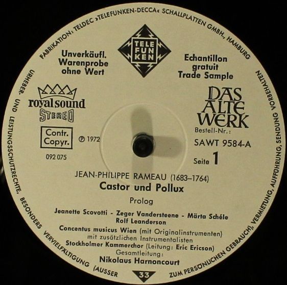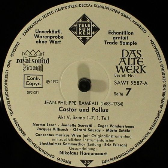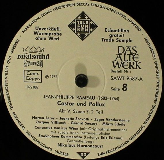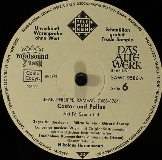 Telefunken SAWT 9584/87-A - Jean-Philippe Rameau, Gérard Souzay, Zeger Vanderst