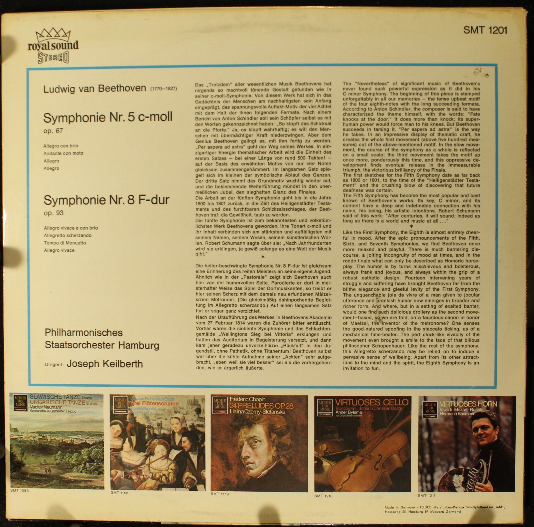 Condition Vinyl Near Mint (NM or M-) Condition Sleeve Very Good (VG) Tracks included: Symphonie Nr. 5 C-Moll Op. 67 I 1. > Allegro Con Brio 2. > Andante Con Moto 3. > Allegro 4. > Allegro Symphonie Nr. 8 F-Dur Op.93 II 1. > Allegro Vivace E Con Brio 2. > Allegretto Scherzande 3. &g