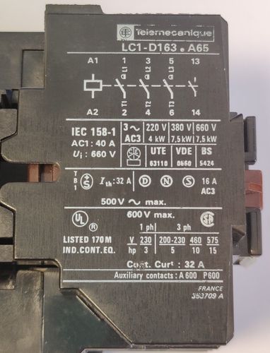 Wir bieten an: TELEMECANIQUE LC1 D163 A65 415, 440, 480 V SCHÜTZ Artikel-Nr.: 2400001109 Technische Daten Hersteller Telemecanique Modell Schütz LC1 D163 A65 Herstellernummer LC1 D163 A65 Höhe 90 mm Breite 58 mm Tiefe 80 mm Stromstärke (A) 40 A Stromspannung (V) 220 V, 380 V, 660 V kW 4 kW, 7,5 kW, ... Mehr