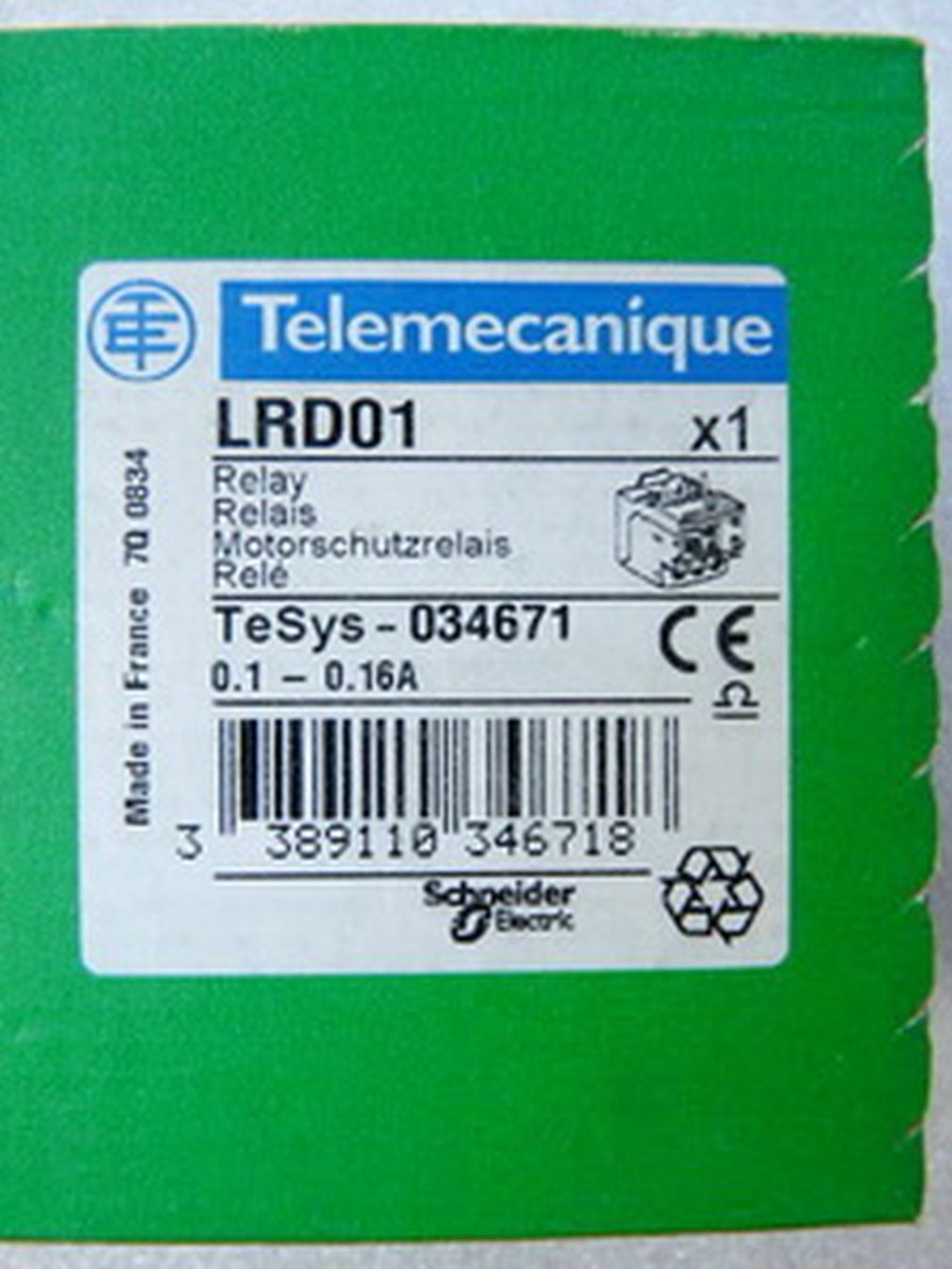 Hood Shop Weitere Auktionen Bewertungsprofil Telemecanique LRD01 Motorschutzrelais Telemecanique LRD01 Motorschutzrelais, ungebraucht, in ungeöffneter original Verpackung Sofort Lieferbar Produktinfo Der oben angegebene Preis bezieht sich immer auf 1 Stück, auch wenn das Produktbild eine Verpackungs