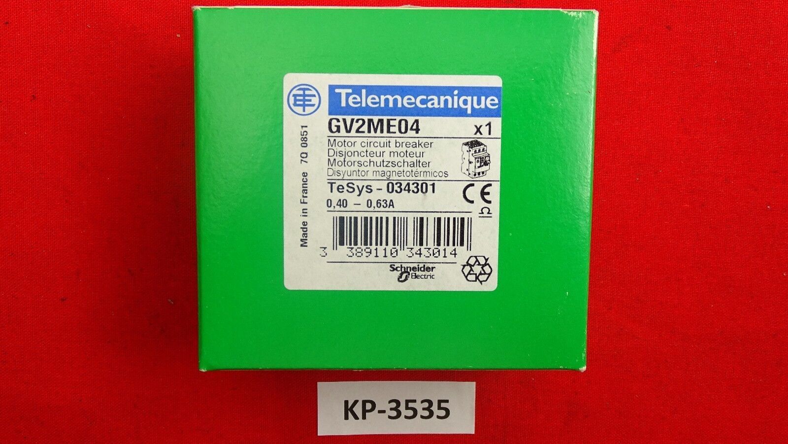 Telemecanique Schneider Motorschutzschalter GV2 ME04 0,4 -0,63A GV2ME04