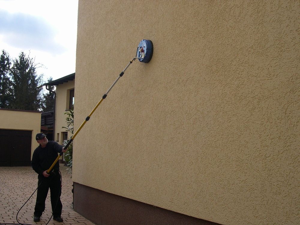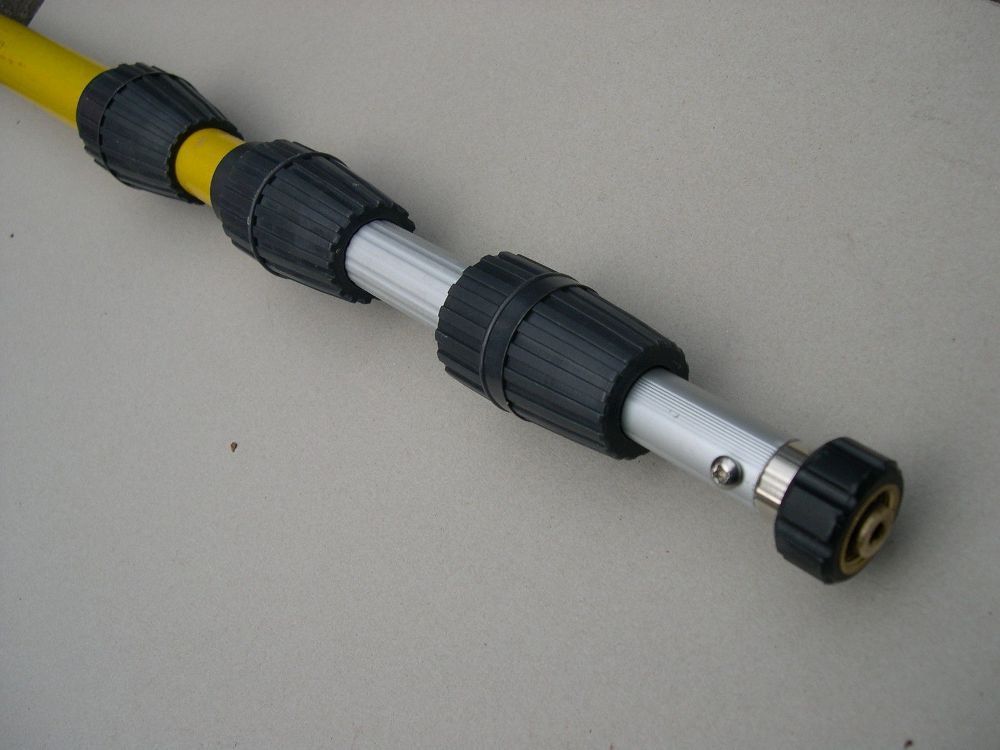 Neuware - mit Rechnung und ausgewiesener Mwst. Hochdruck -Tel eskoplanze (von ca. 2,10m bis 7,3 m ausziehbar) aus Aluminium kpl. mit Hochdruckpistole (siehe Foto) GA X 7,3 Profigerät - Industrieausführung - der auf dem Foto abgebildete Wand bzw. Terassenreiniger ist nicht bestandteil der Auktion und
