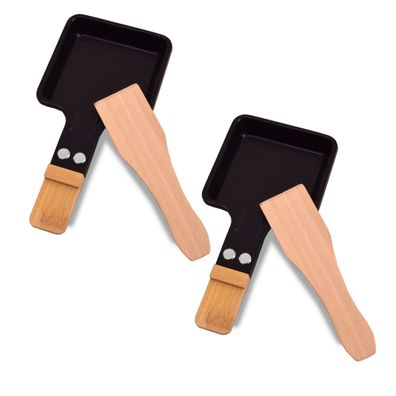 • 2x Universal Grill Raclette Pfännchen viereckig Bambus mit Schaber
