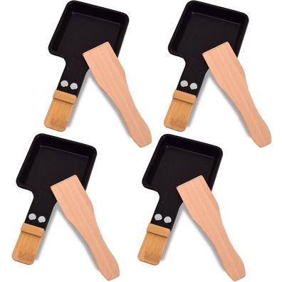 • 4x Universal Grill Raclette Pfännchen viereckig Bambus mit Schaber