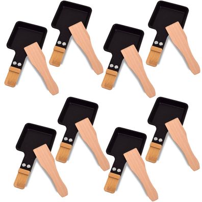 • 8 x Universal Grill Raclette Pfännchen viereckig Bambus mit Schaber