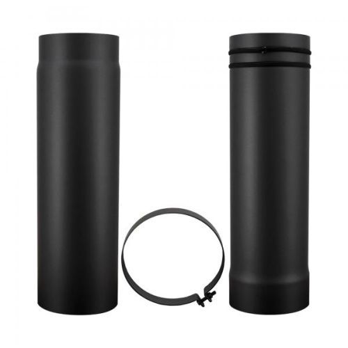 Das Teleskoprohr mit Dichtringen und Schelle; als rauchgasdichte Verbindung zwischen zwei Punkten, z.B. einen sehr schweren Ofen und Schornsteinanschluss,