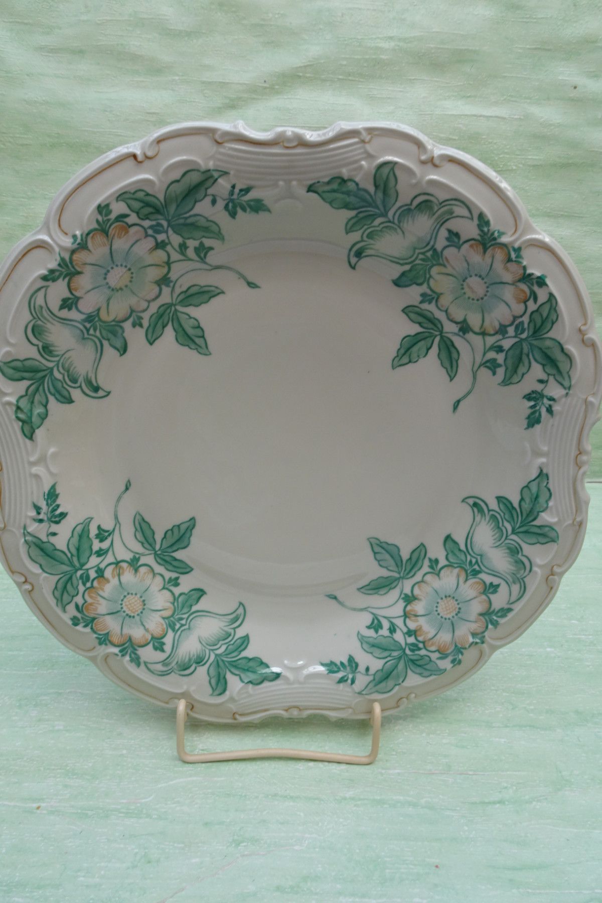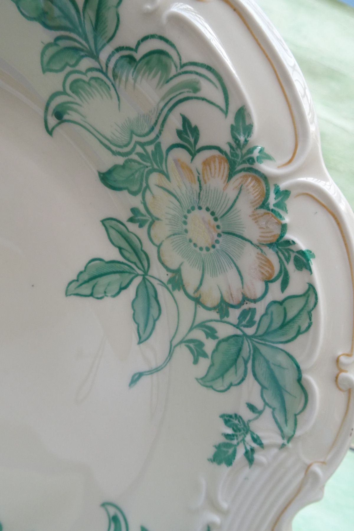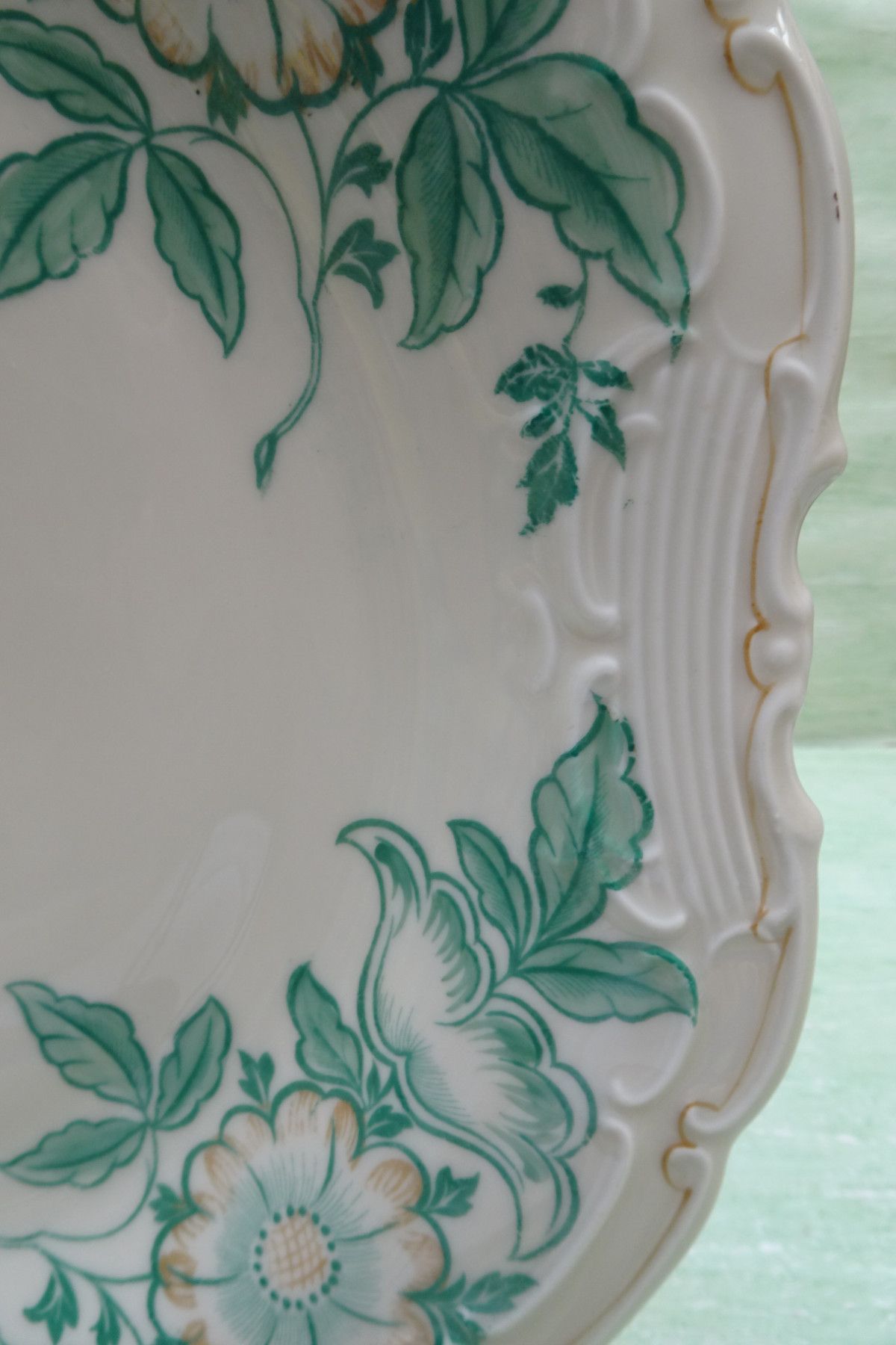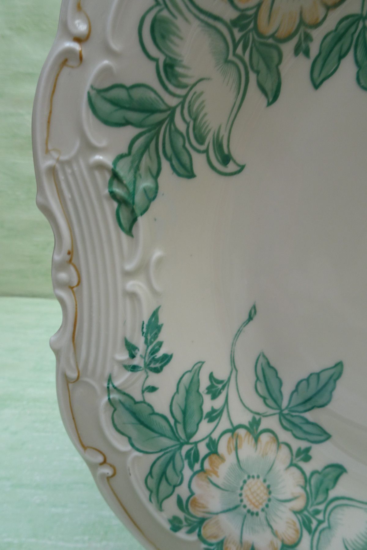 Teller Schale Platte Waldershof Franz Neukirchner grün-creme Blumen 32x3,5cm
