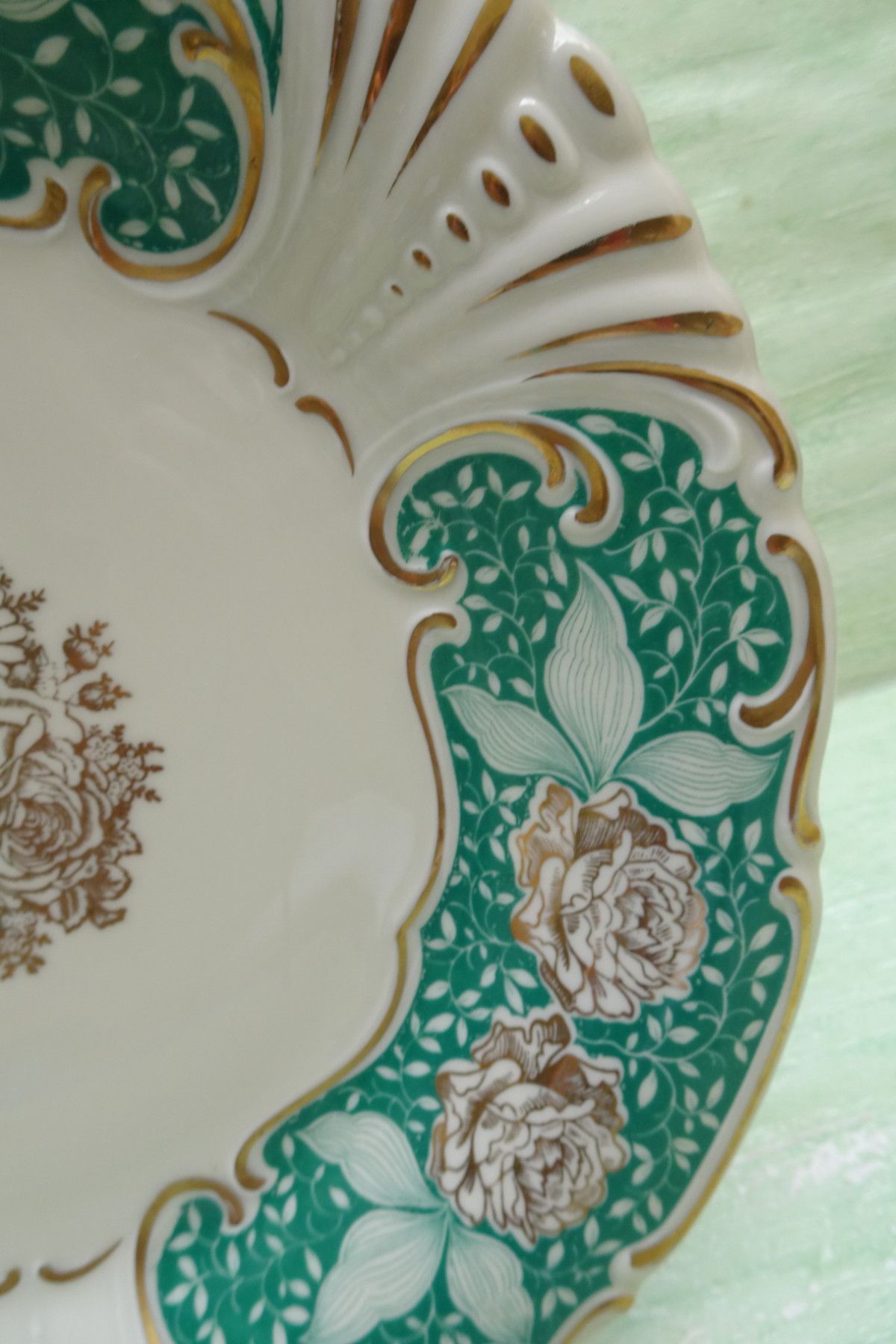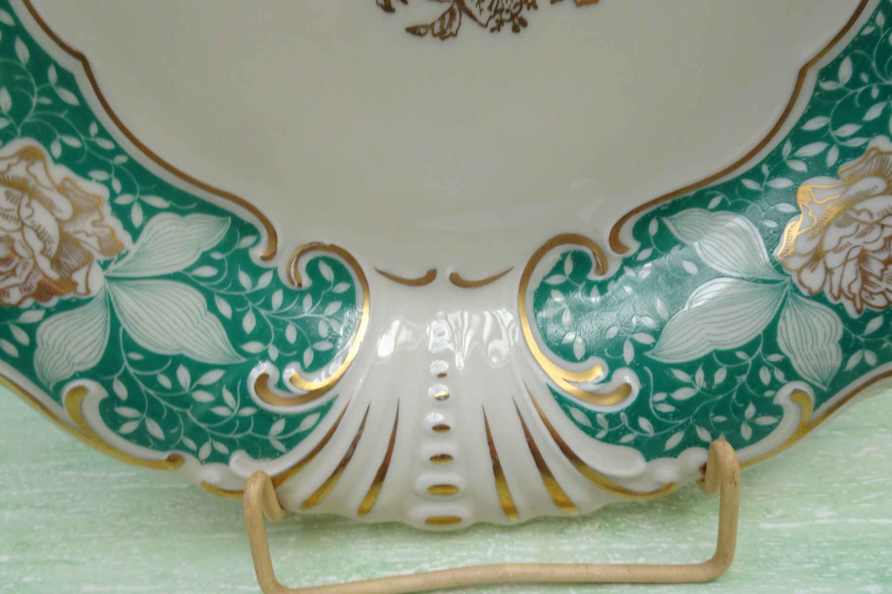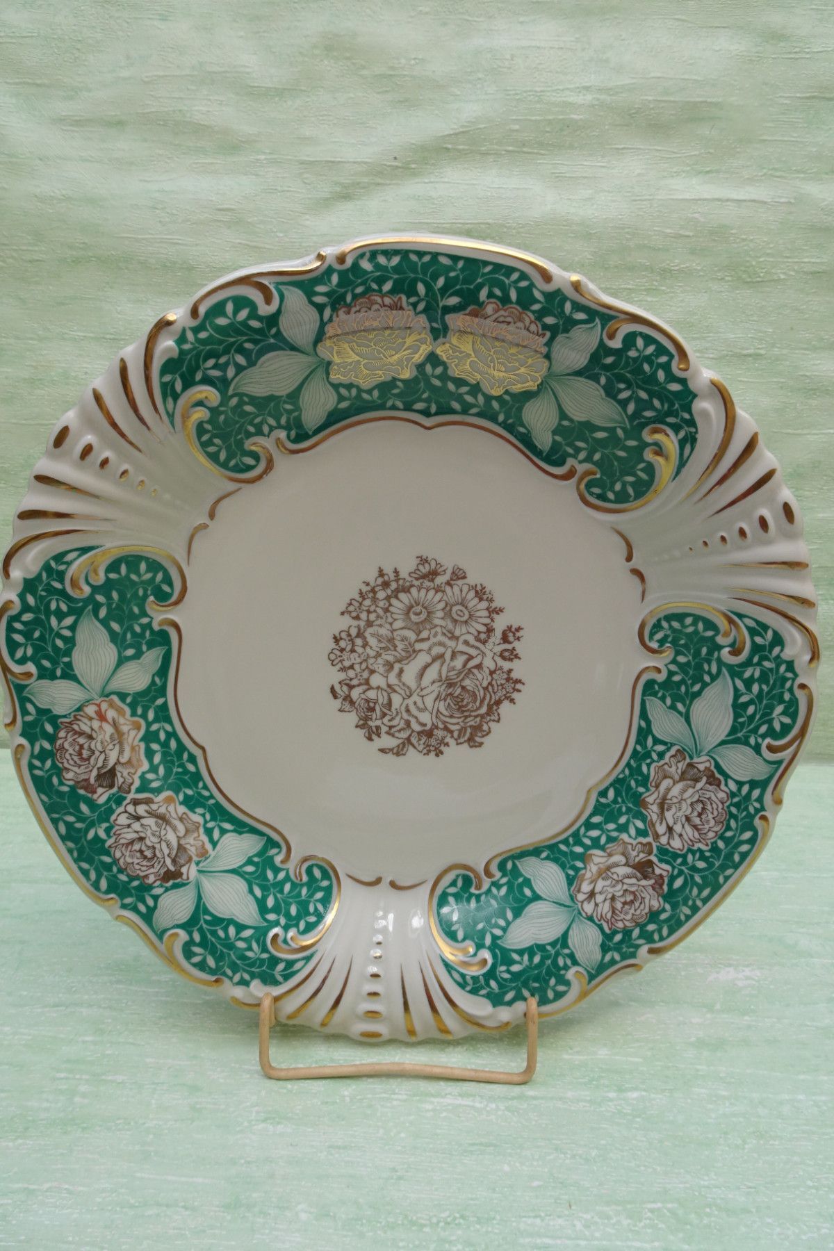 Teller Schale Platte Waldershof Franz Neukirchner grün-gold-creme Blumen 31x3,5cm