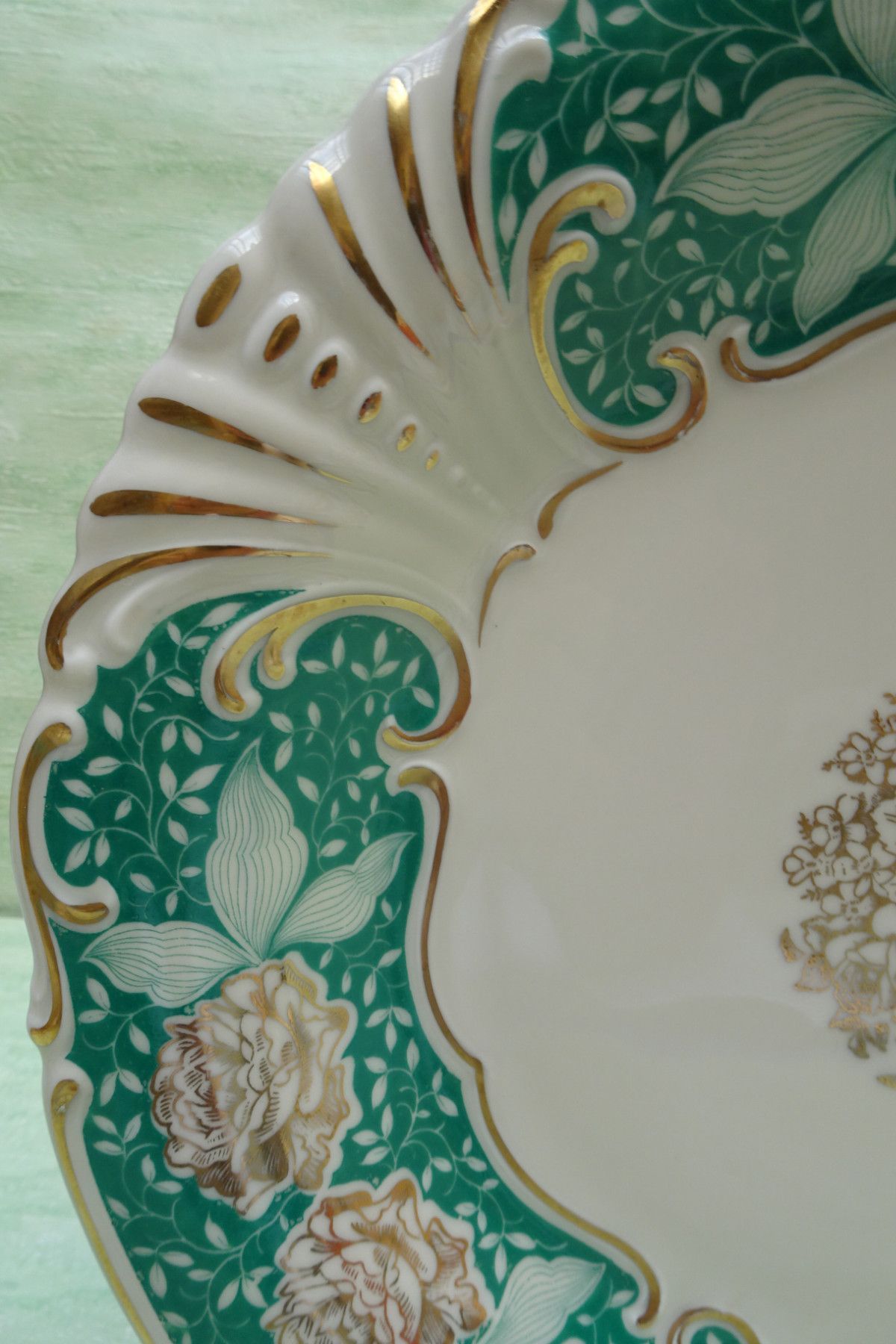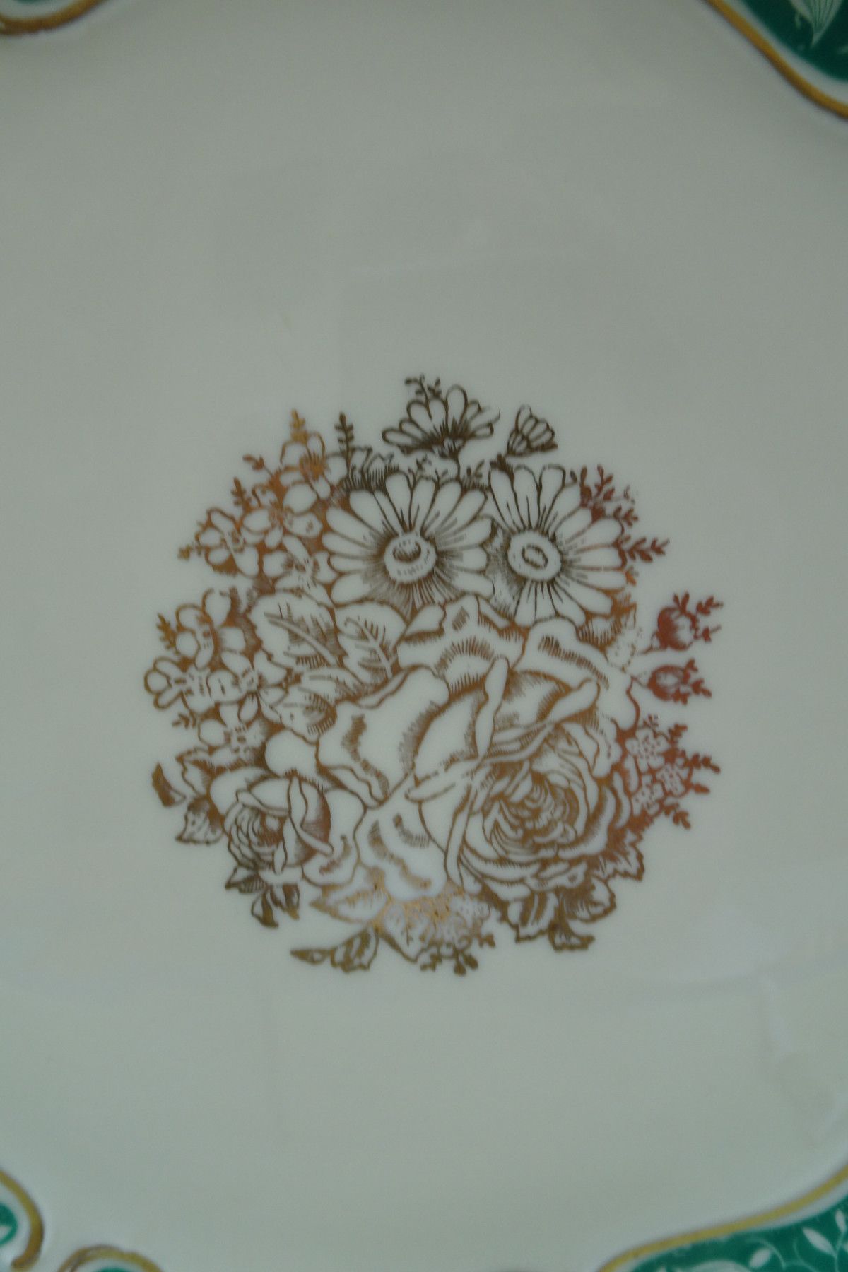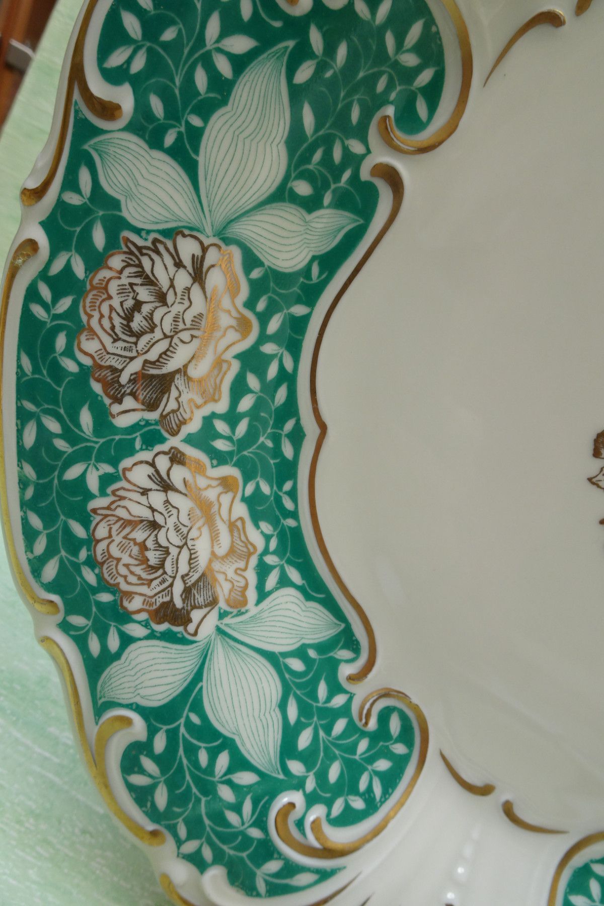 Teller Schale Platte Waldershof Franz Neukirchner grün-gold-creme Blumen 31x3,5cm