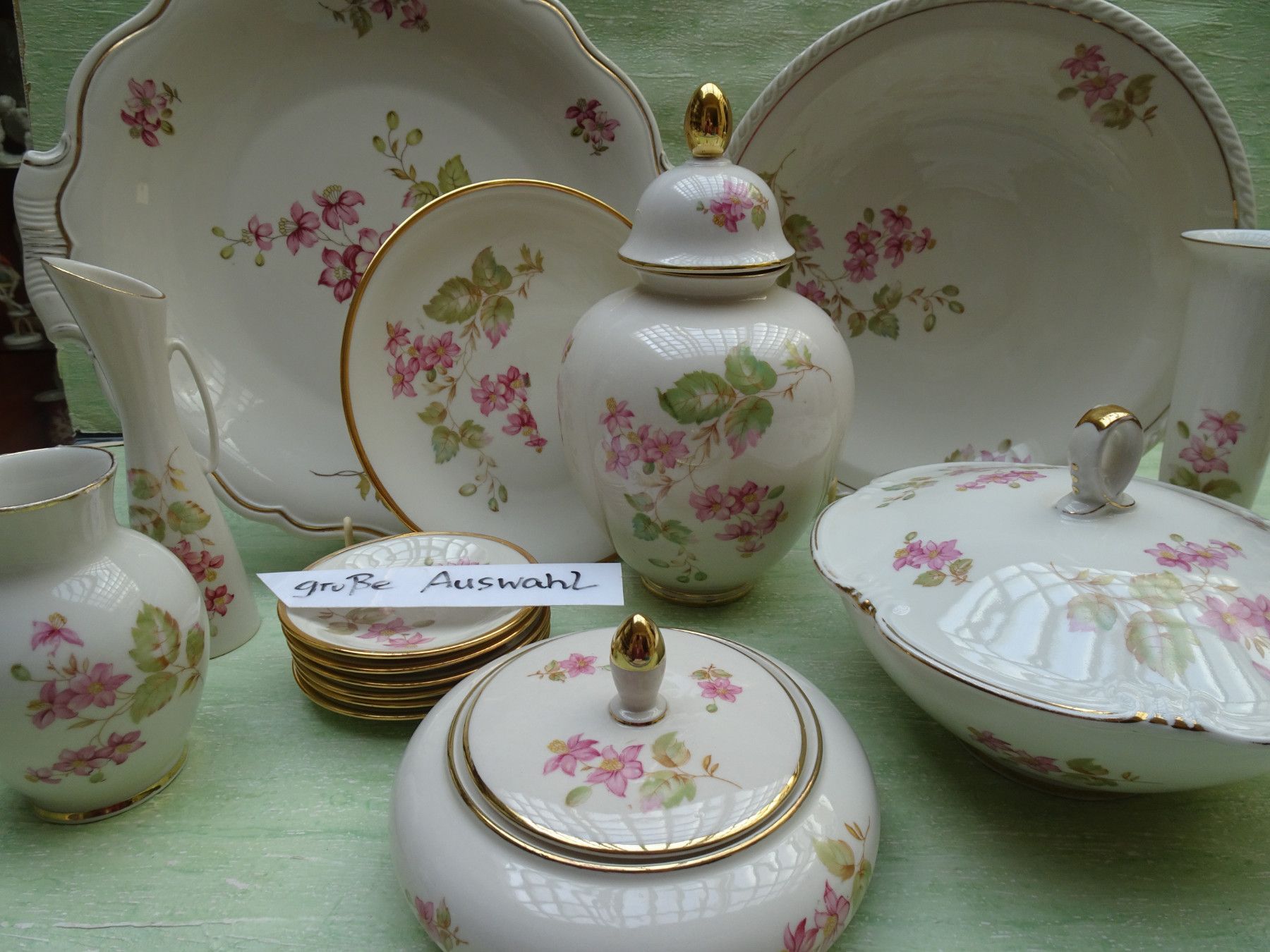 Teller Schalen Vasen Deckeldosen Goldrand rosa Blüten Zeh Scherzer Eschenbach ua