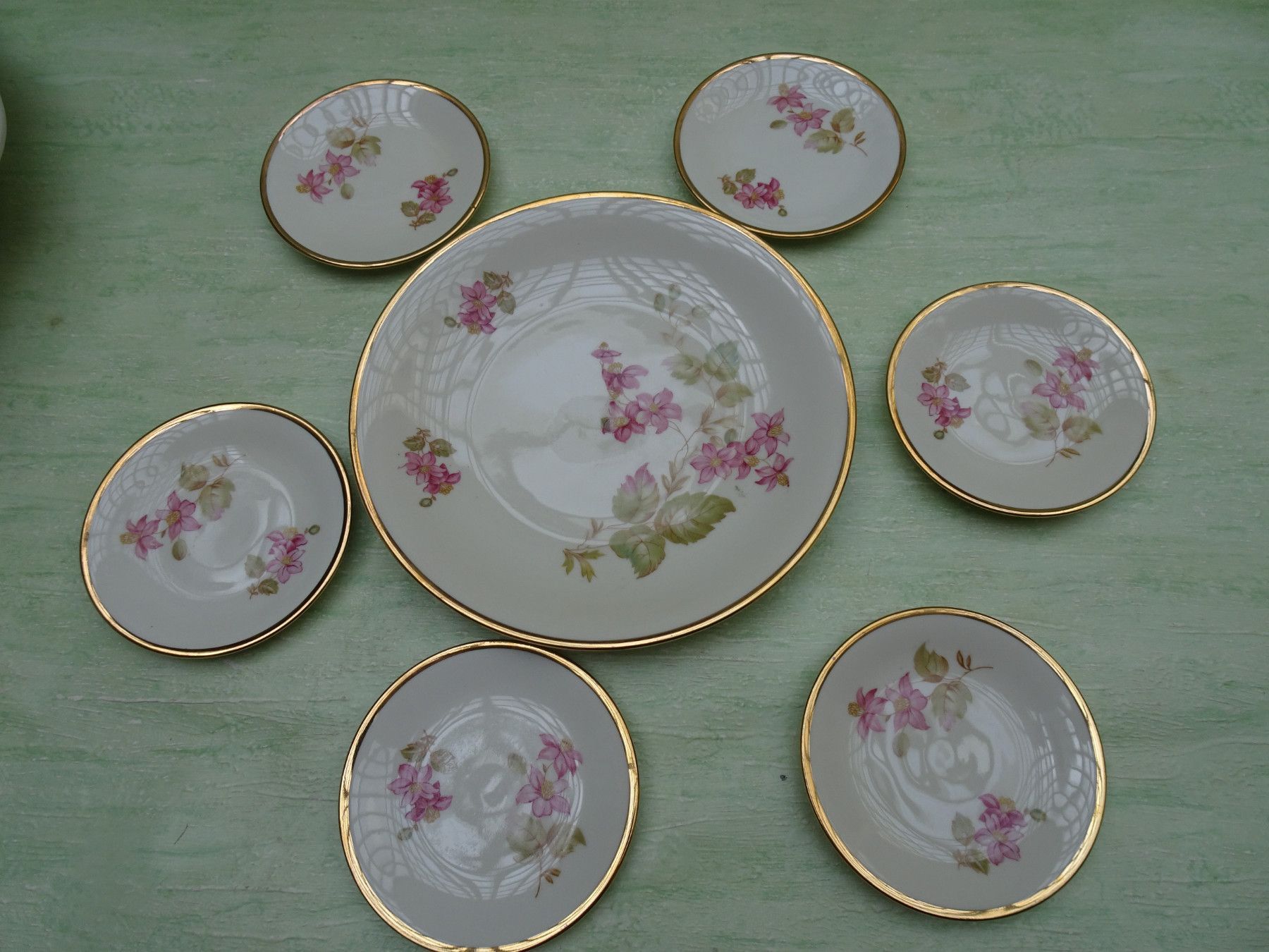 Teller Zeh & Scherzer ca 33x31cm, Schale auf Fuß F21/29 ca 26,5x7,5cm, Konfektschale nr 21 ca 9x15cm, Gebäcktellerset 7tlg Seltmann Weiden