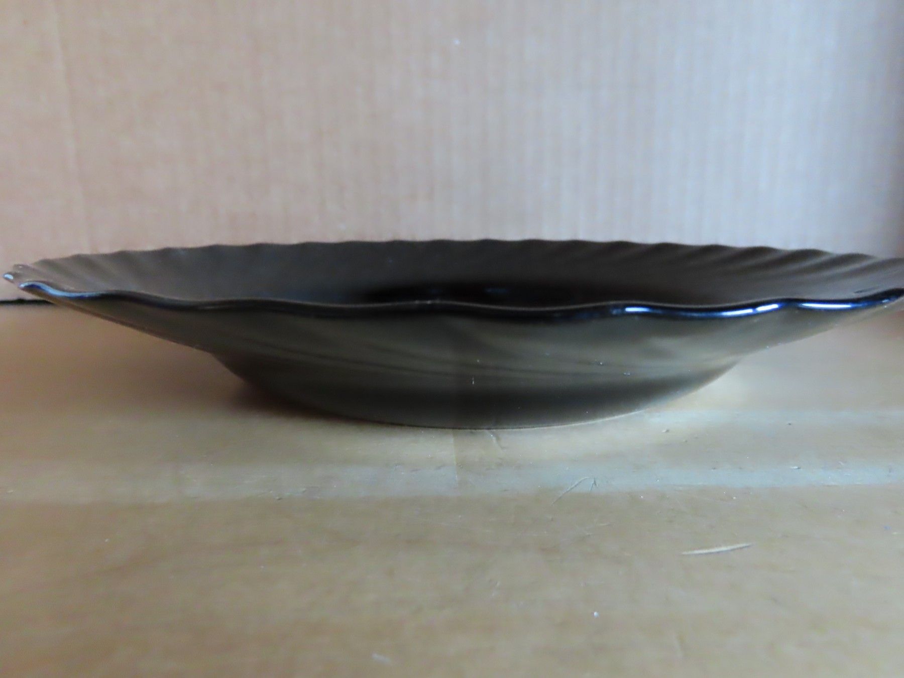 Maße: ca. 3,3 cm hoch x ca. 22,5 cm Durchmesser -an der breitesten Stelle gemessen die Standfläche hat einen Durchmesser von ca. 12 cm Auf der Unterseite steht France Material: Glas ist leicht verschmutzt und hat Kratzer Könnte Luminarc Trianon sein -bin mir aber nicht sicher... Mehr